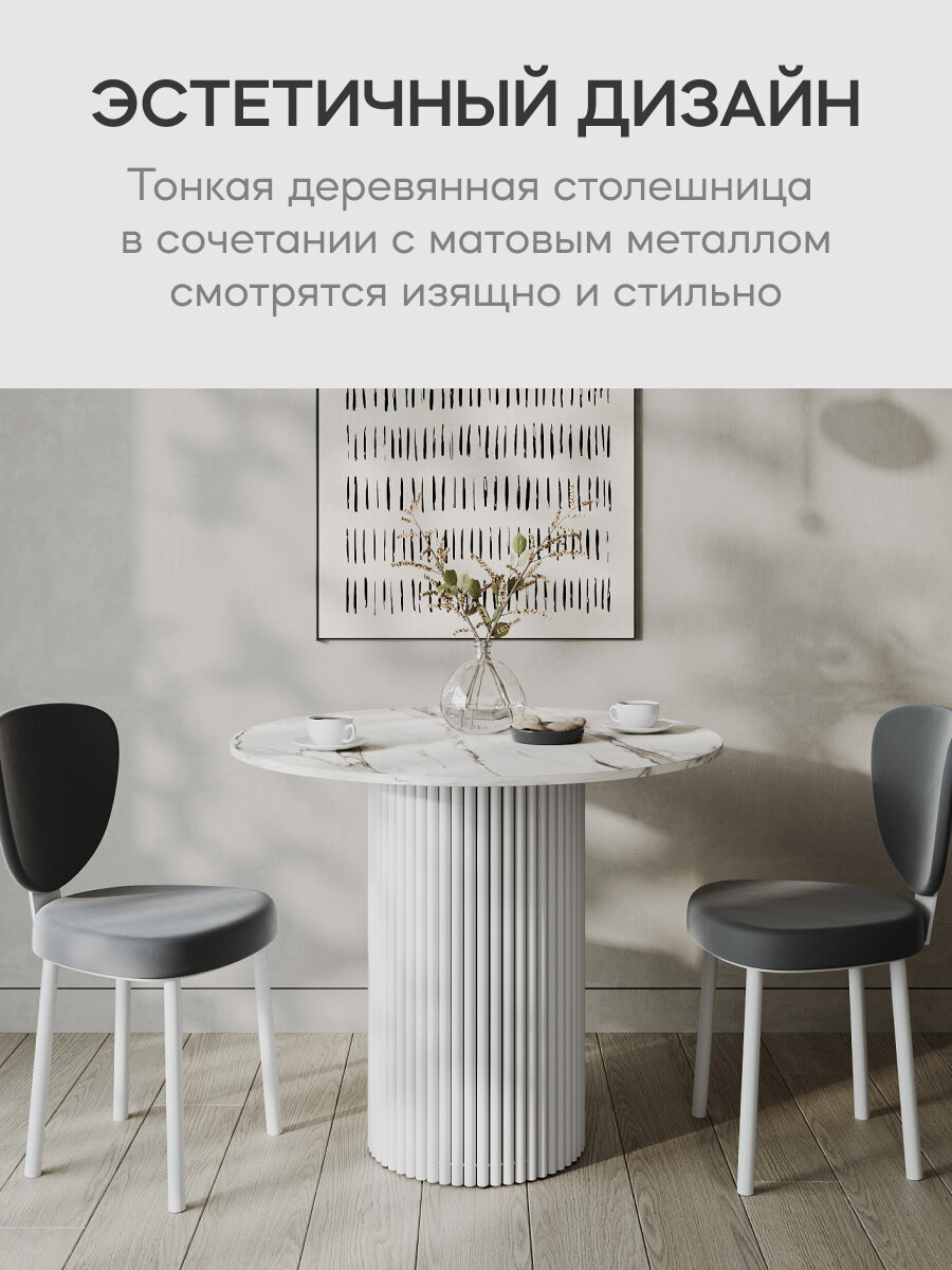 СохранитьGEN GROUP Кухонный обеденный стол TRUBIS Wood L D80 см белый мрамор с белым подстольем интересное: