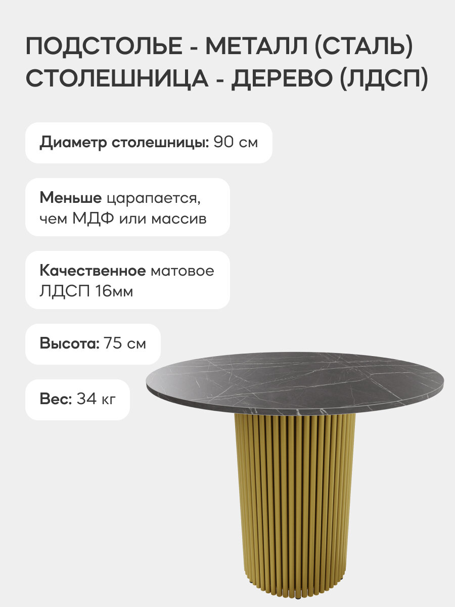 СохранитьGEN GROUP Кухонный обеденный стол TRUBIS Wood L D90 см черный мрамор с золотым подстольем интересное: