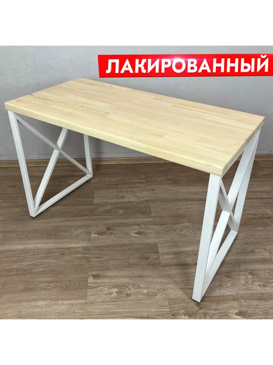 Стол кухонный Loft с лакированной столешницей из массива сосны 40 мм и белыми металлическими Z-образными ножками, 120х60х75 см