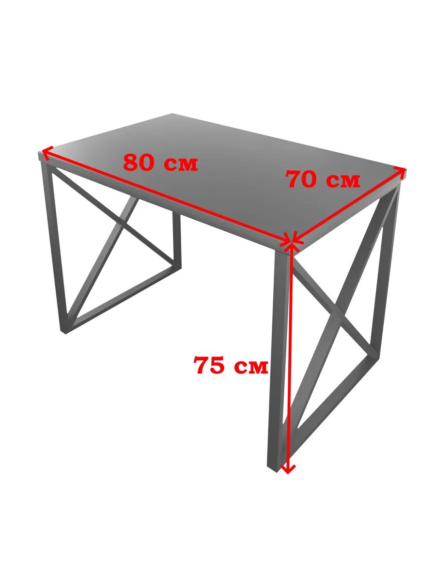 Стол кухонный Loft со столешницей цвета антрацит из массива сосны 40 мм и черными металлическими крестообразными ножками, 90х80х75 см