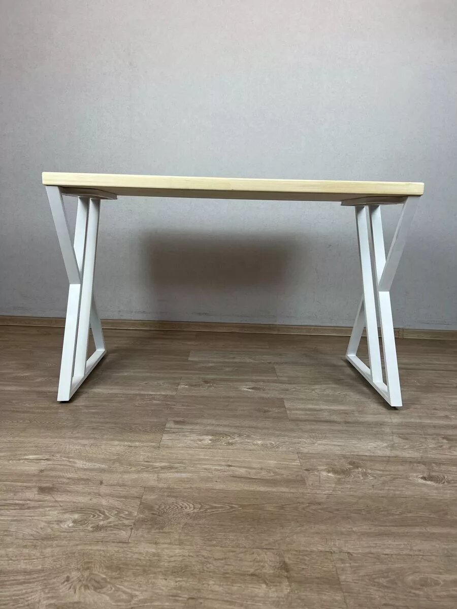 Стол кухонный Loft со столешницей без покрытия из массива сосны 40 мм и белыми металлическими крестообразными ножками, 110х70х75 см