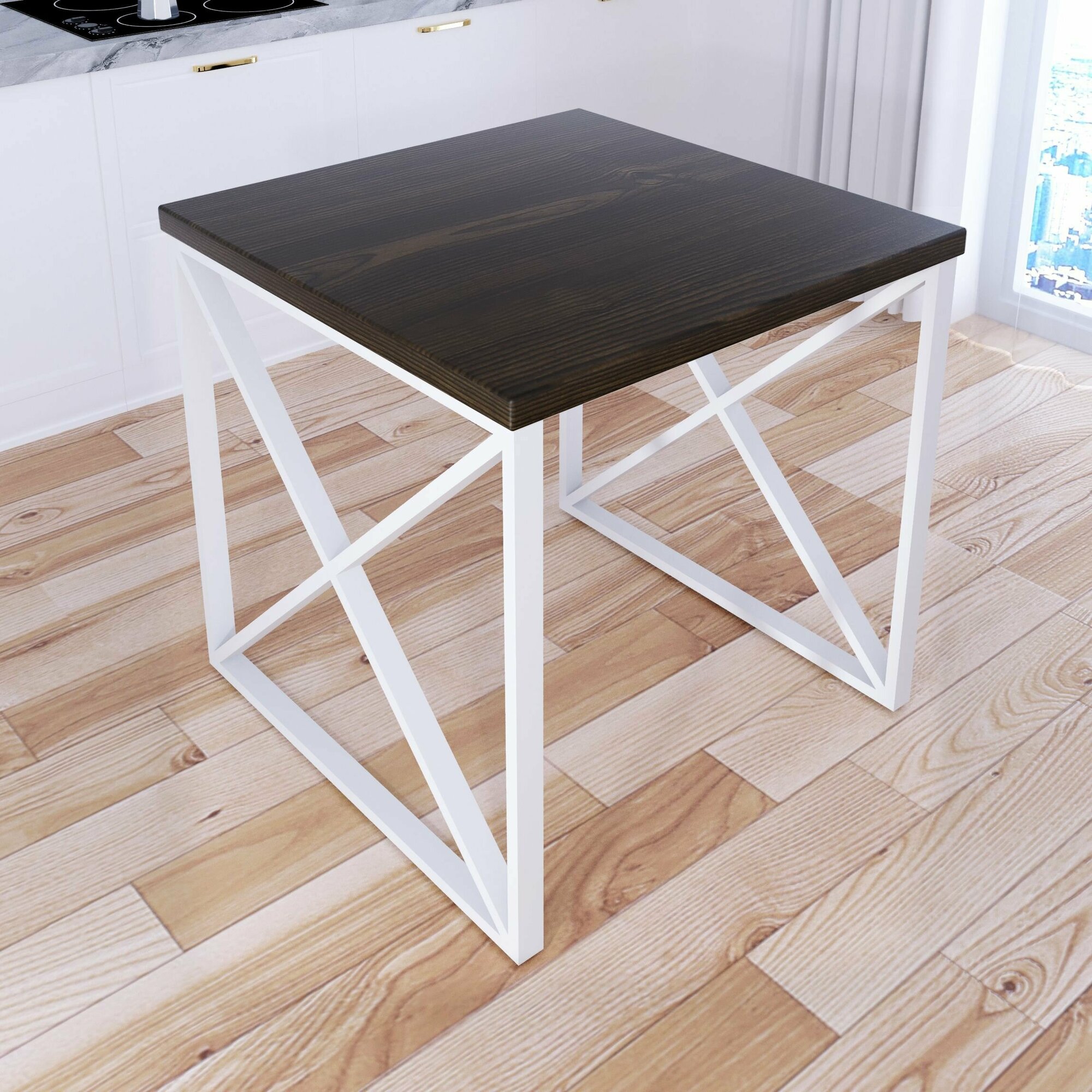 Стол кухонный Loft с квадратной столешницей цвета темного дуба из массива сосны 40 мм и белыми металлическими крестообразными ножками, 60x60х75 см