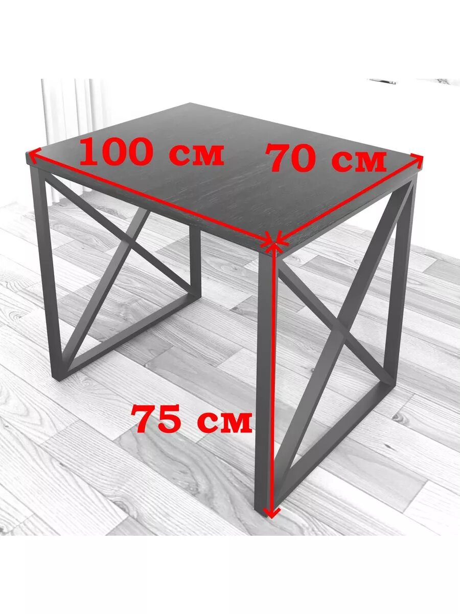 Стол кухонный Loft со столешницей цвета венге из массива сосны 40 мм и черными металлическими крестообразными ножками, 110х60х75 см