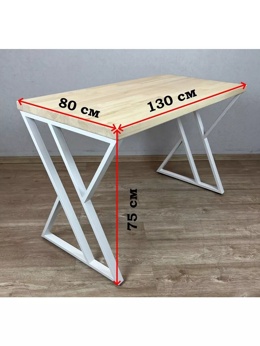 СохранитьСтол кухонный Loft со столешницей из массива сосны 40 мм без шлифовки и покрытия, с белыми металлическими Z-образными ножками, 130х80х75 см интересное: