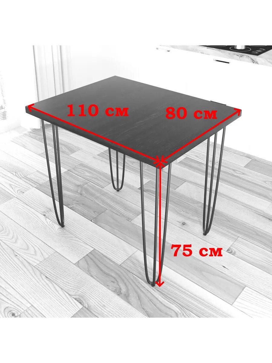 Стол кухонный Loft со столешницей цвета антрацит из массива сосны 40 мм на черных металлических ножках-шпильках, 110x75х75 см