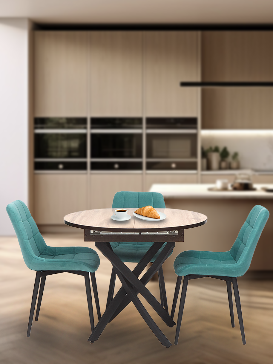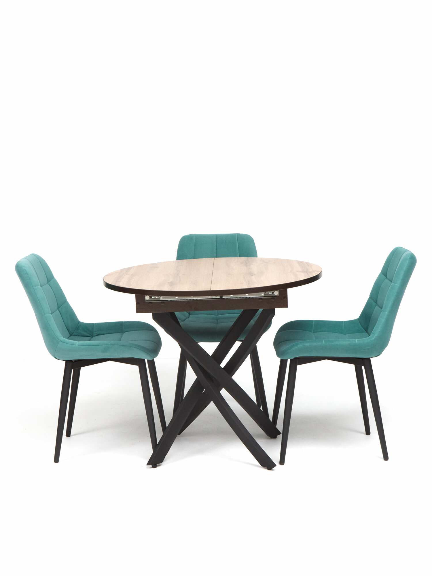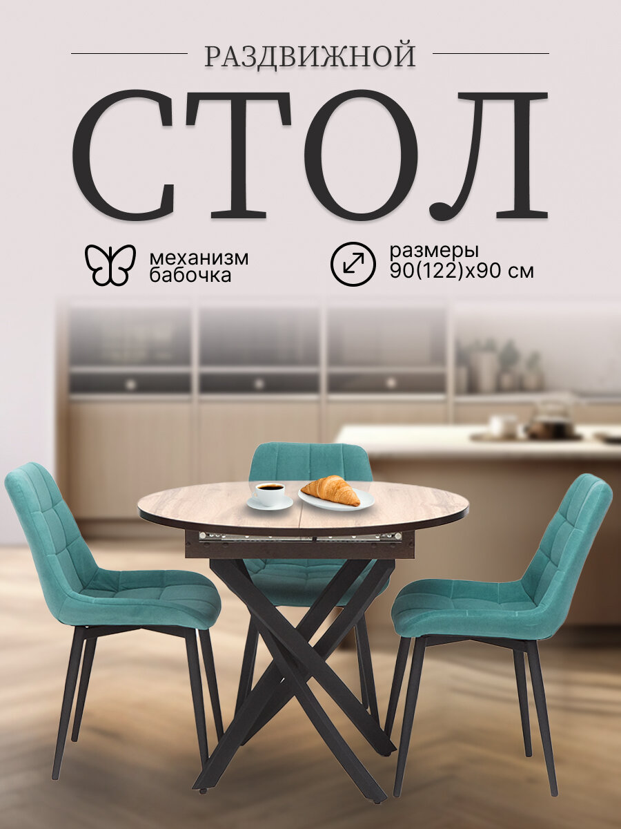 Стол кухонный раздвижной Норд круглый в стиле лофт, пластик, цвет дуб вотан, ножки черный матовый интересное: