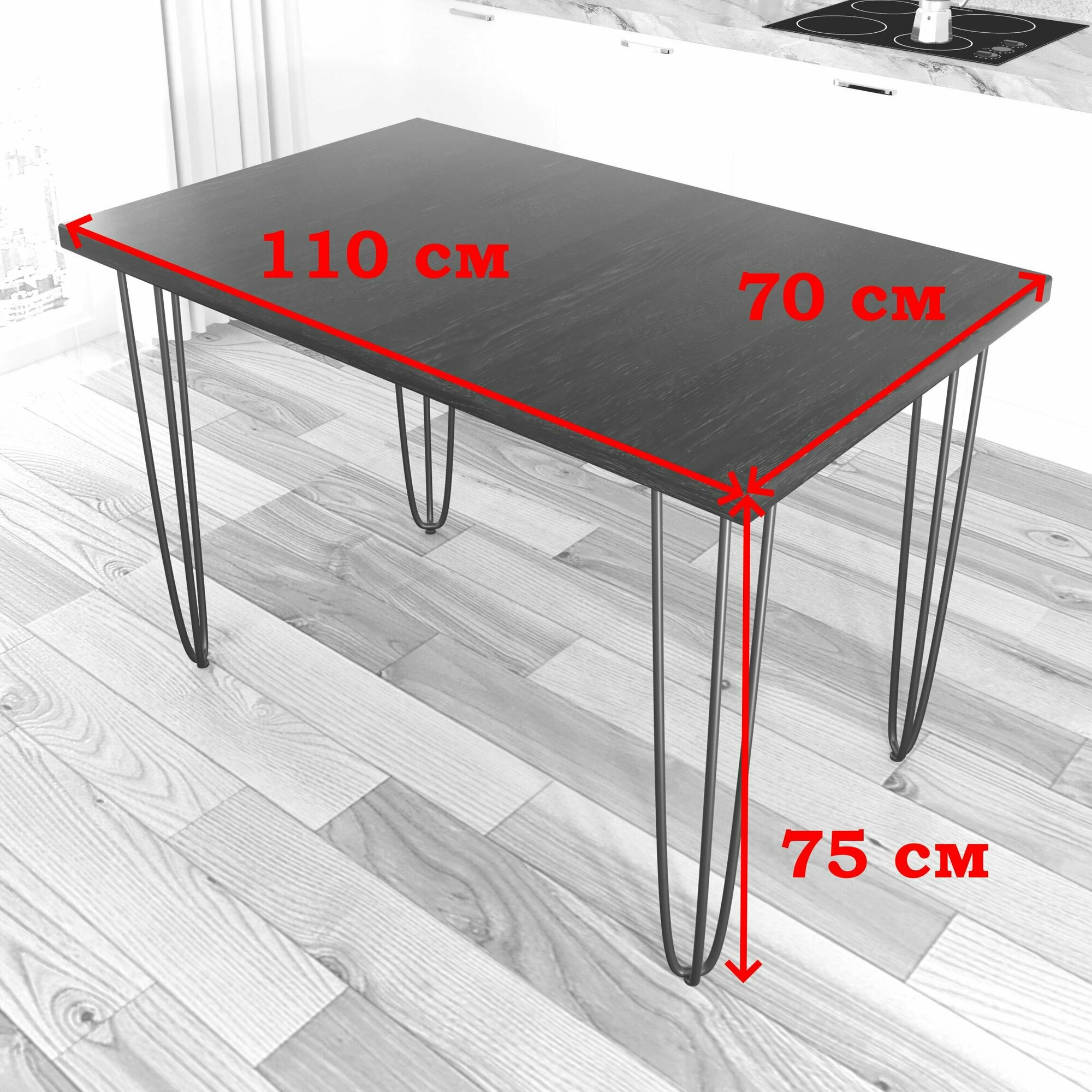 Стол кухонный Loft с лакированной столешницей из массива сосны 40 мм и черными металлическими ножками-шпильками, 110х60 см