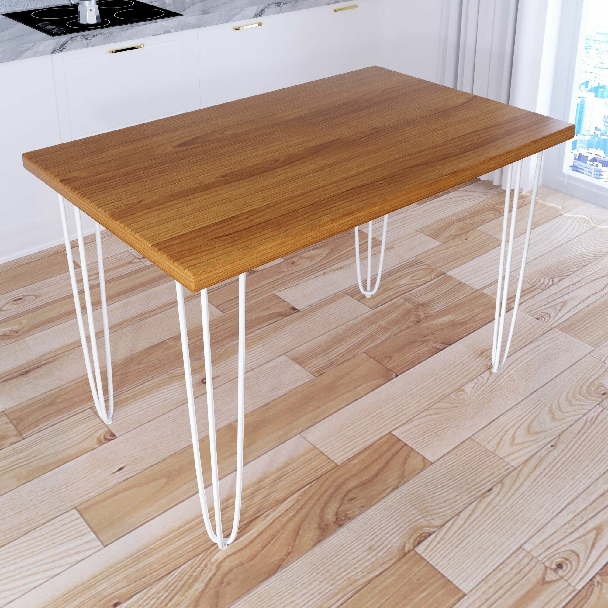 Стол кухонный Loft со столешницей цвета ольхи из массива сосны 40 мм на белых металлических ножках-шпильках, 110x75х75 см