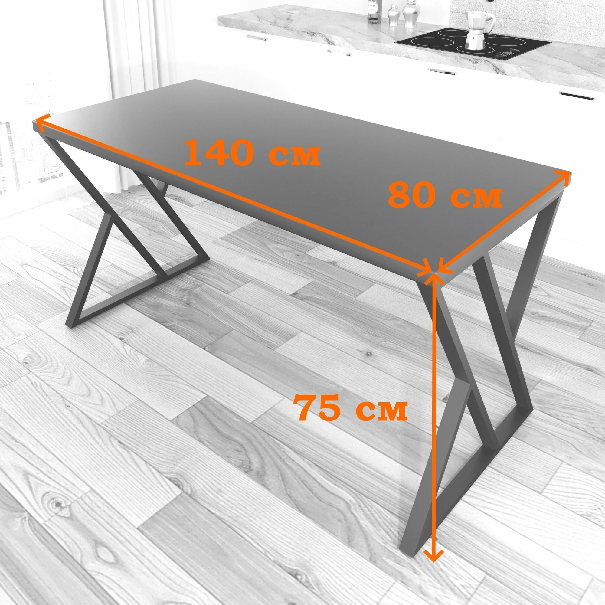 Стол кухонный Loft со столешницей цвета антрацит из массива сосны 40 мм и черными металлическими Z-образными ножками, 140х80х75 см