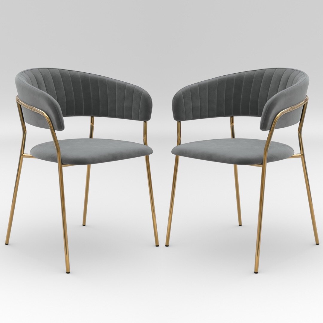 Купить Комплект мягких стульев с подлокотниками HESBY Whispered Fusion серый с золотыми ножками (2 шт)