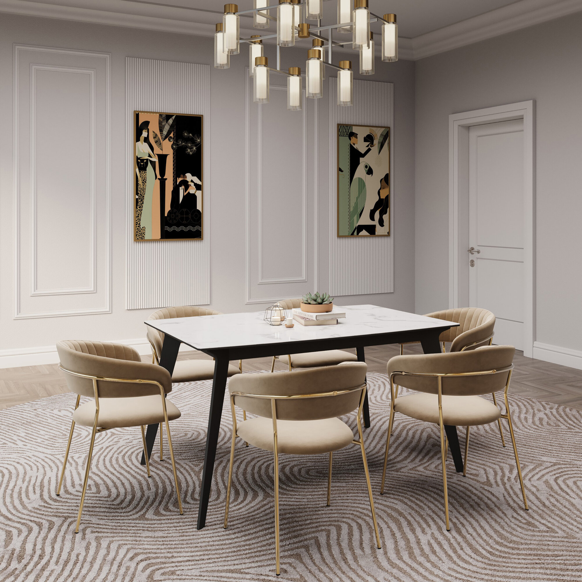 Комплект мягких стульев с подлокотниками HESBY Whispered Fusion бежевый с золотыми ножками (2 шт)