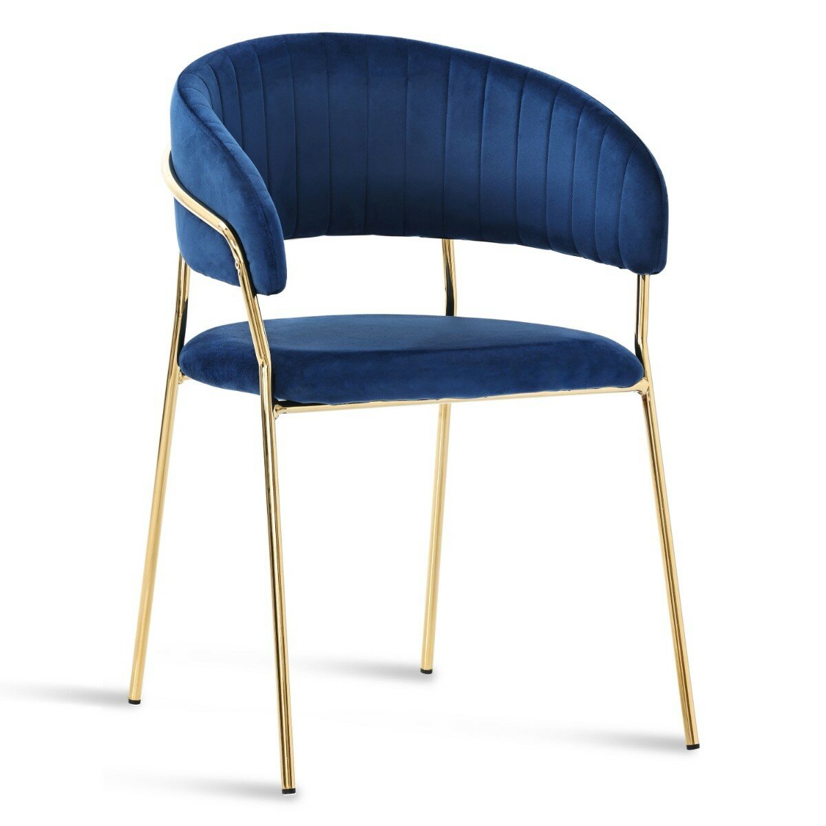 Стул мягкий с подлокотниками HESBY Whispered Fusion темно-синий с золотыми ножками