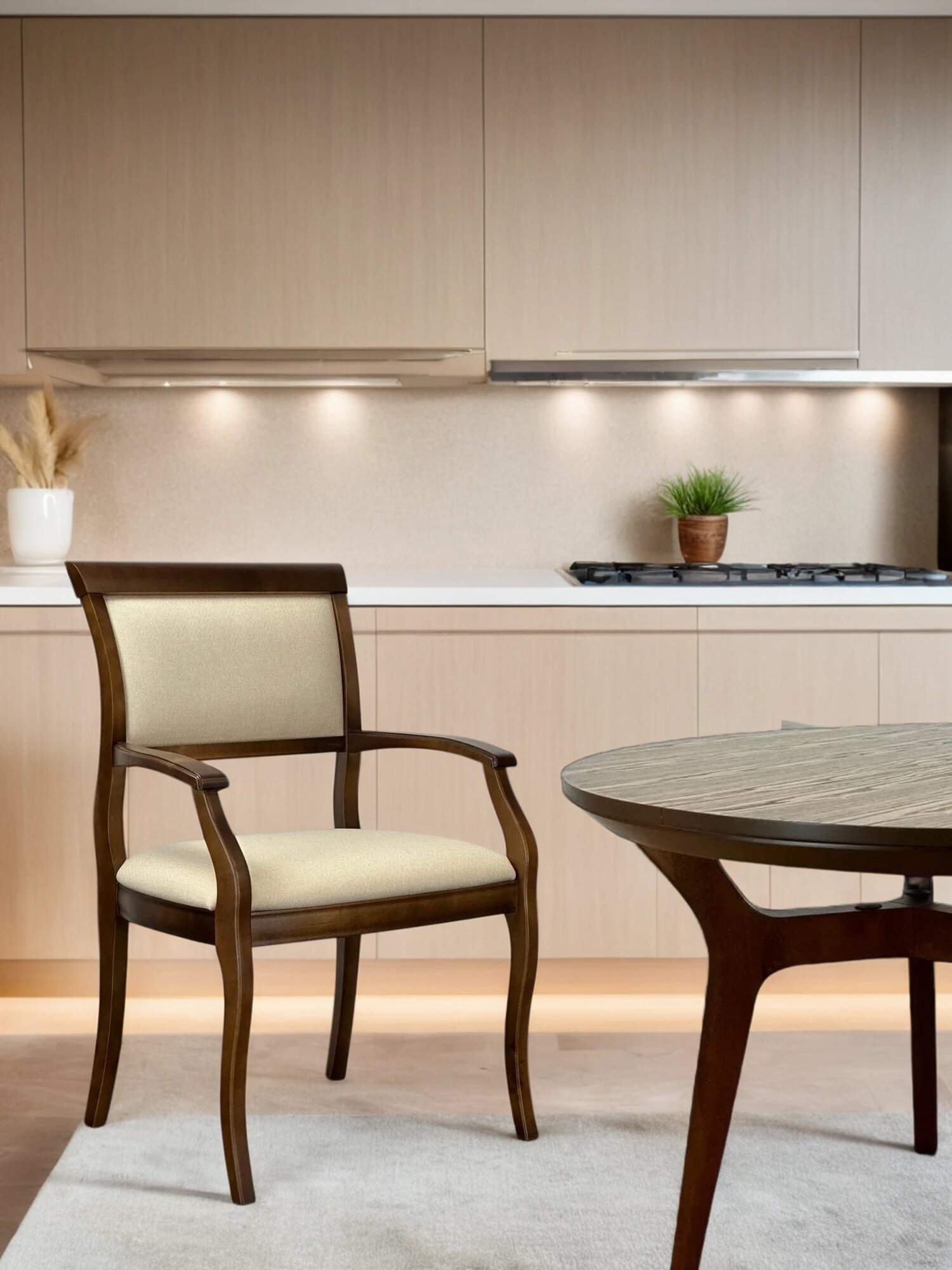 Стул с подлокотниками из массива дерева с мягким сиденьем Вена3. т25. Sbw для гостиной столовой кабинета дома