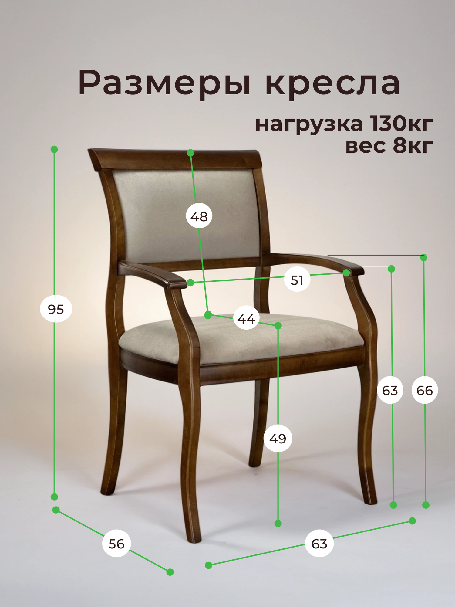 Кресло из массива дерева с мягким сиденьем Вена3. т6. Ш290 для гостиной столовой кабинета дома
