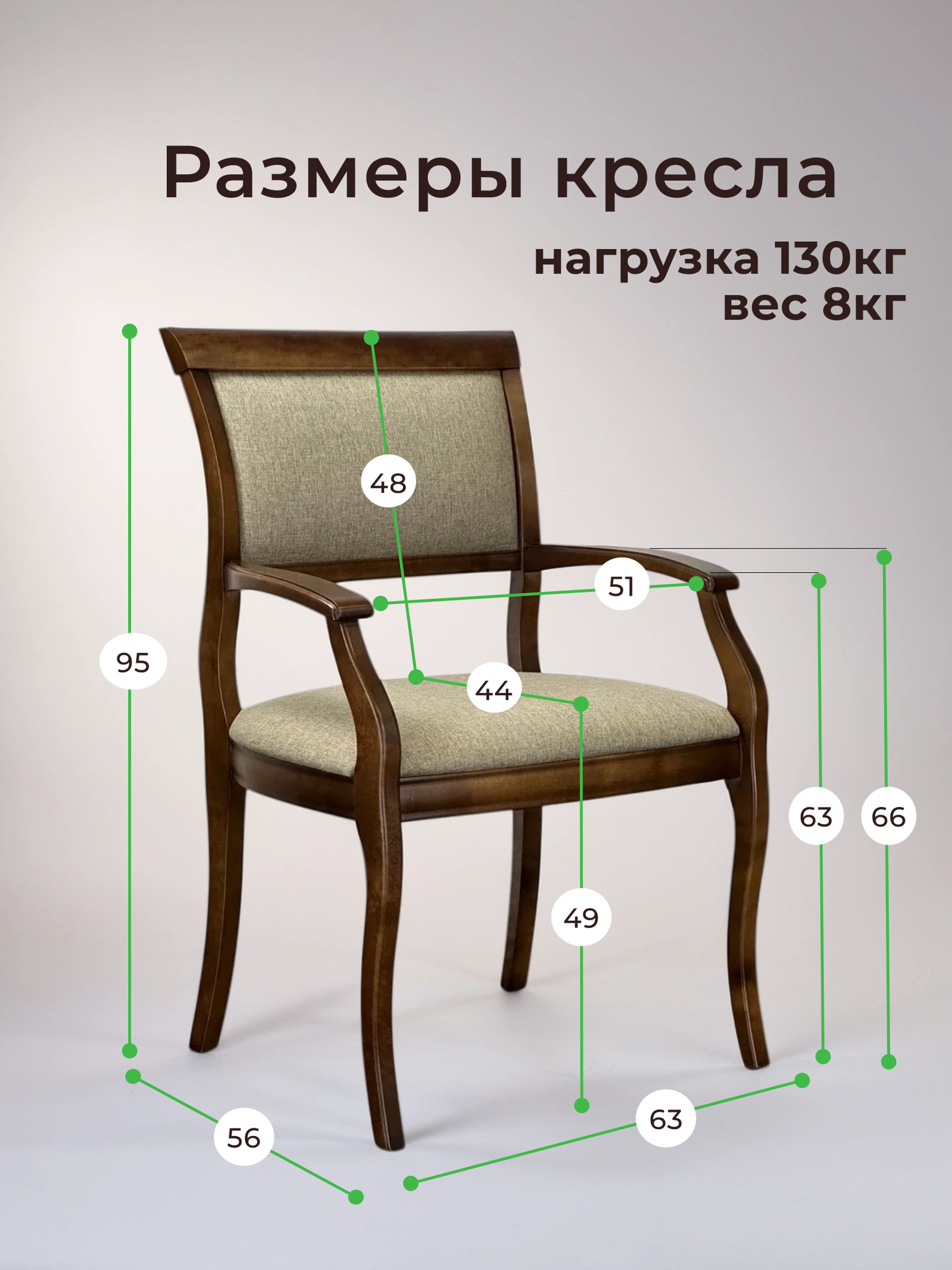 Кресло из массива дерева с мягким сиденьем Вена3. т6. Ш290 для гостиной столовой кабинета дома