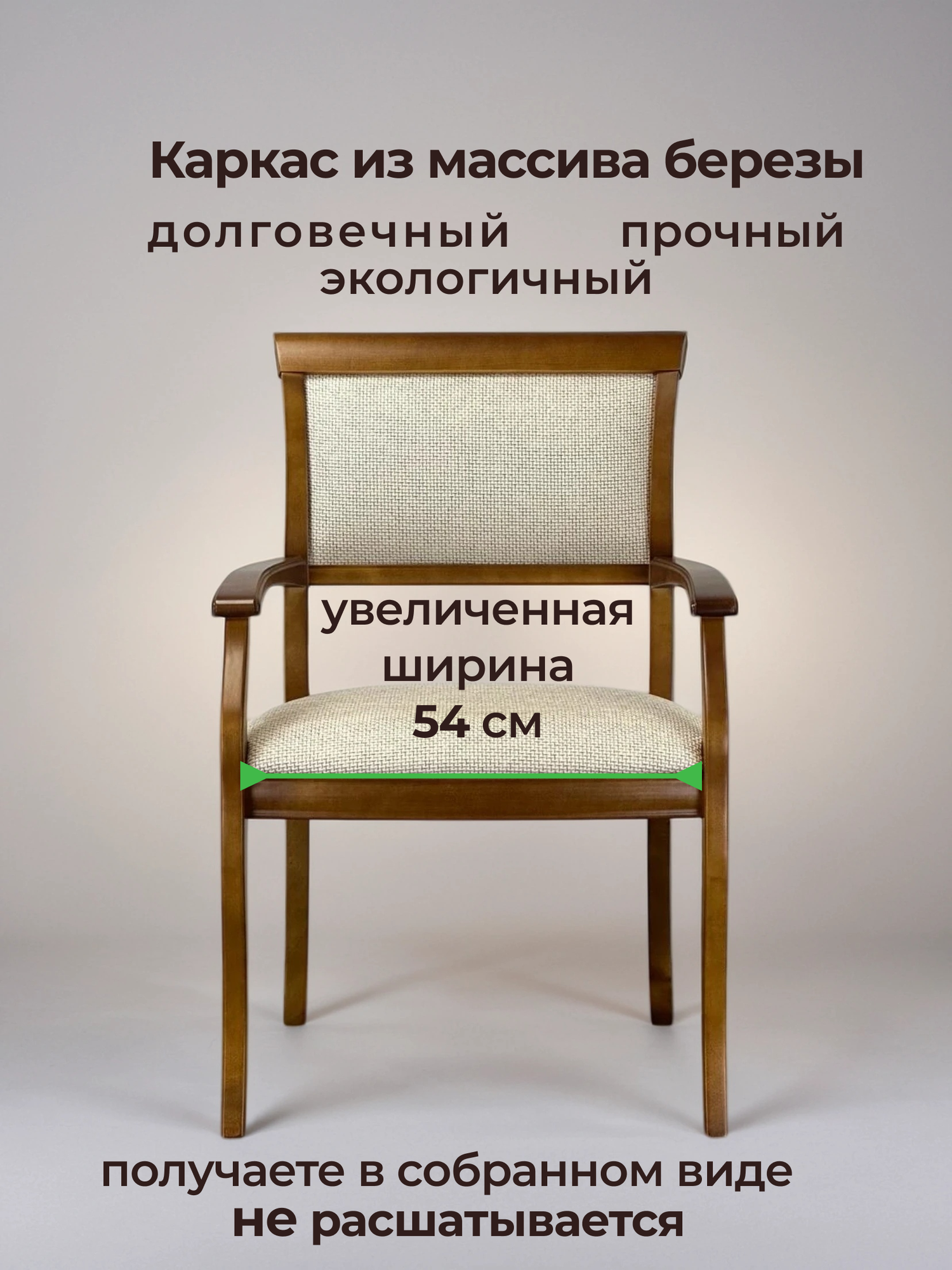 Кресло из массива дерева с мягким сиденьем Вена3. т6. Ш290 для гостиной столовой кабинета дома