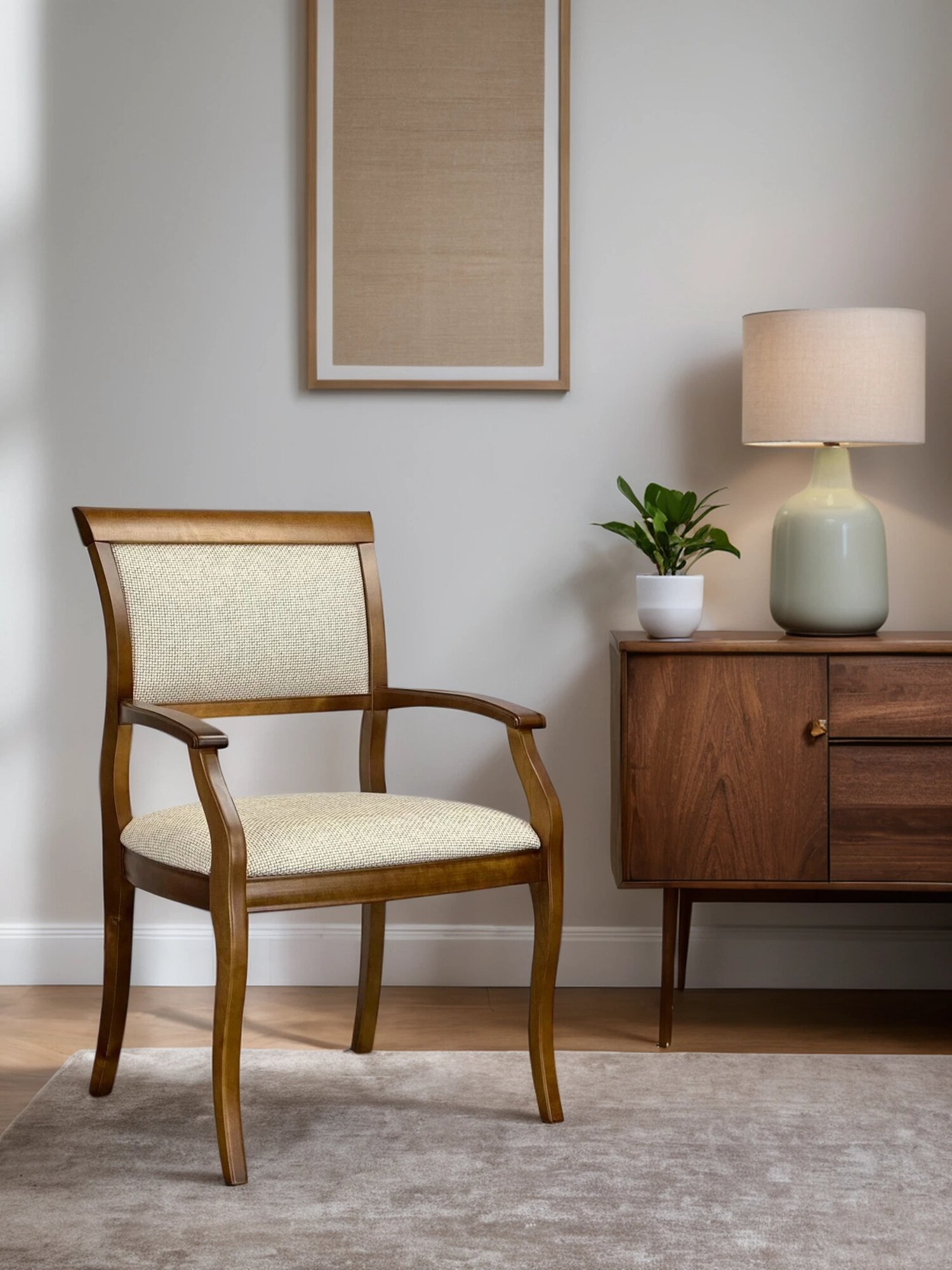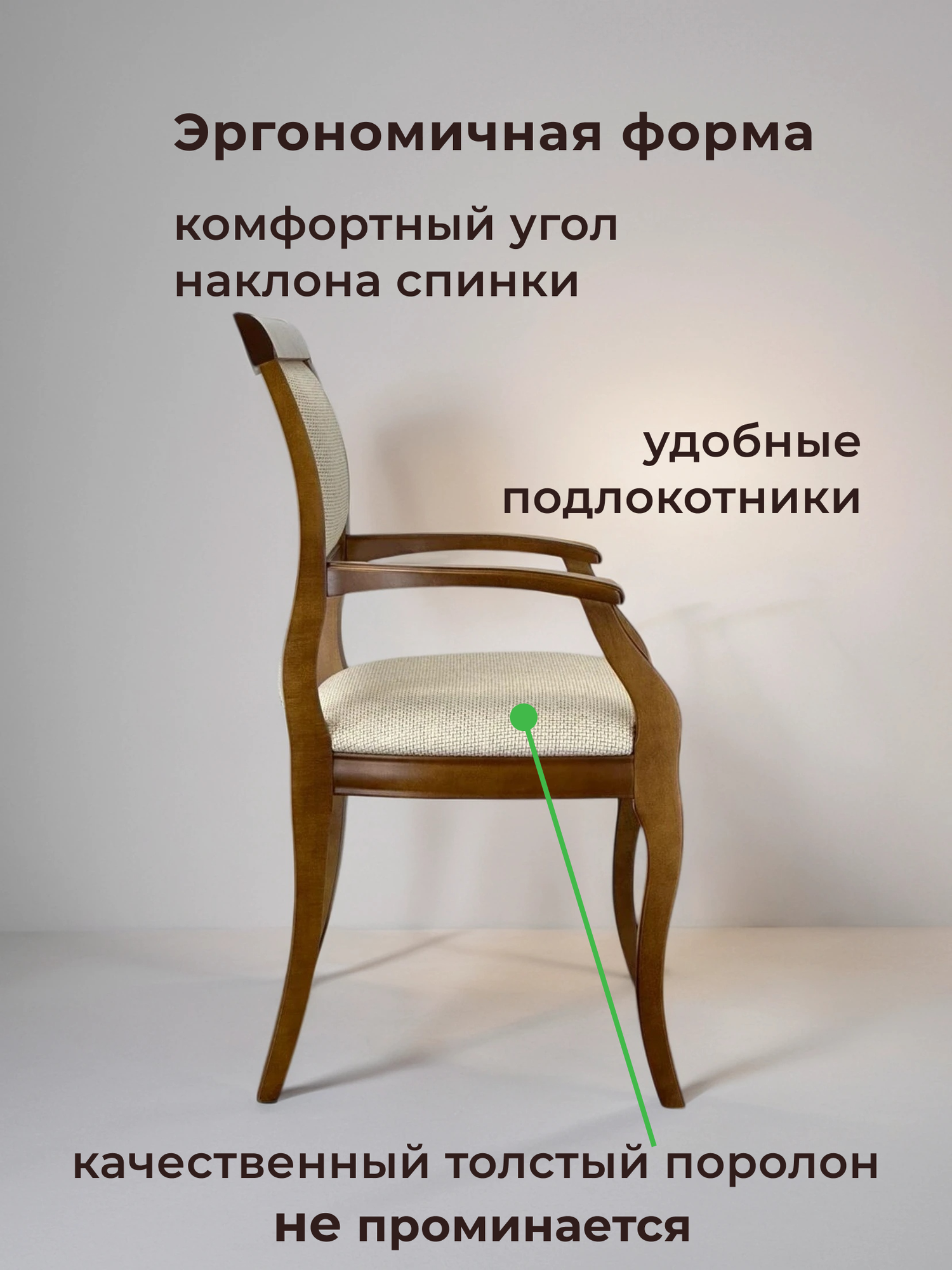 Стул с подлокотниками из массива дерева с мягким сиденьем Вена3. т25. Sbw для гостиной столовой кабинета дома
