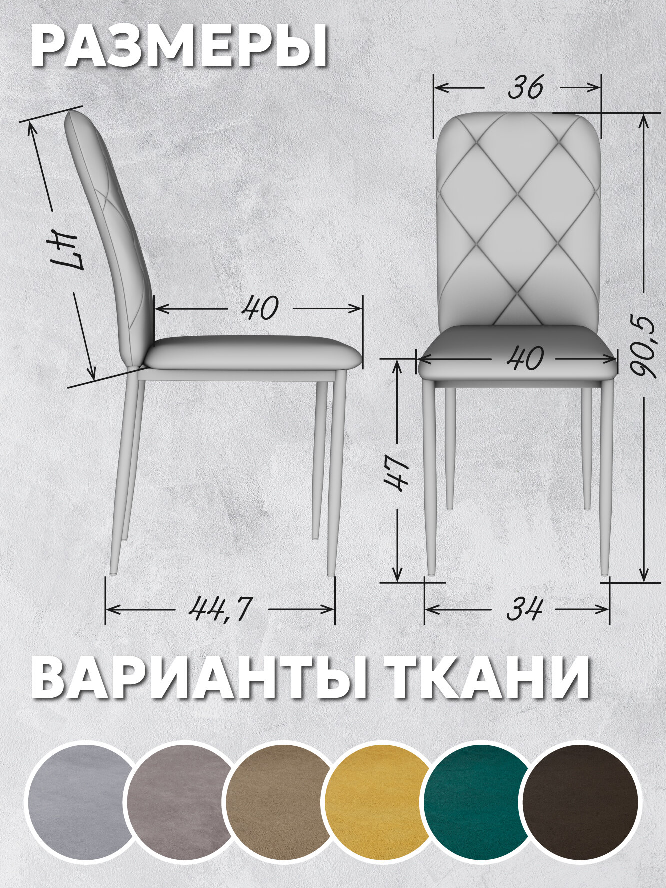 Стул кухонный, StulStol Сати, велюр, кухонный, мягкий, антивандальный, серый, 2 шт