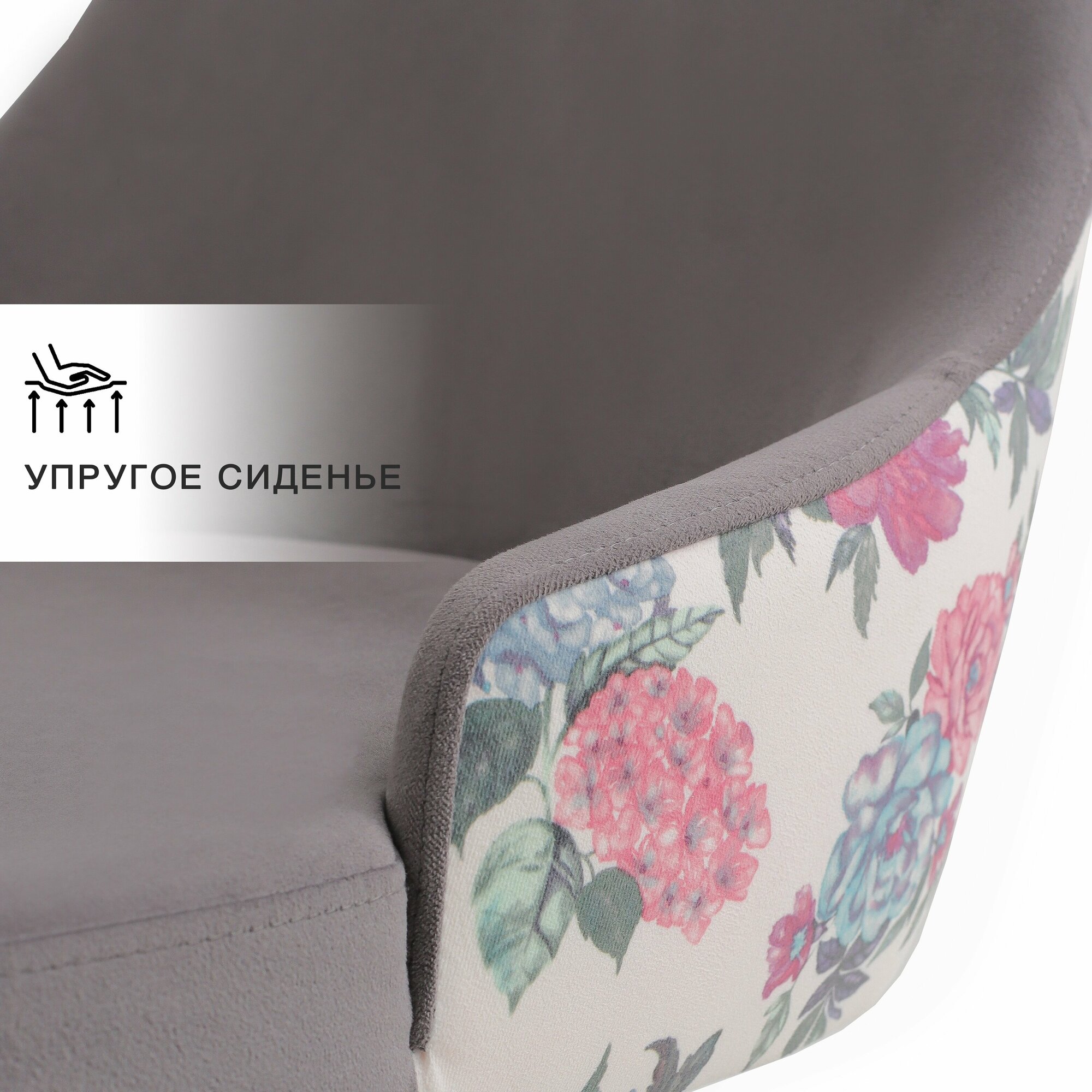 Купить Кухонный стул с анатомической спинкой и мягким сиденьем, серый велюр с цветами