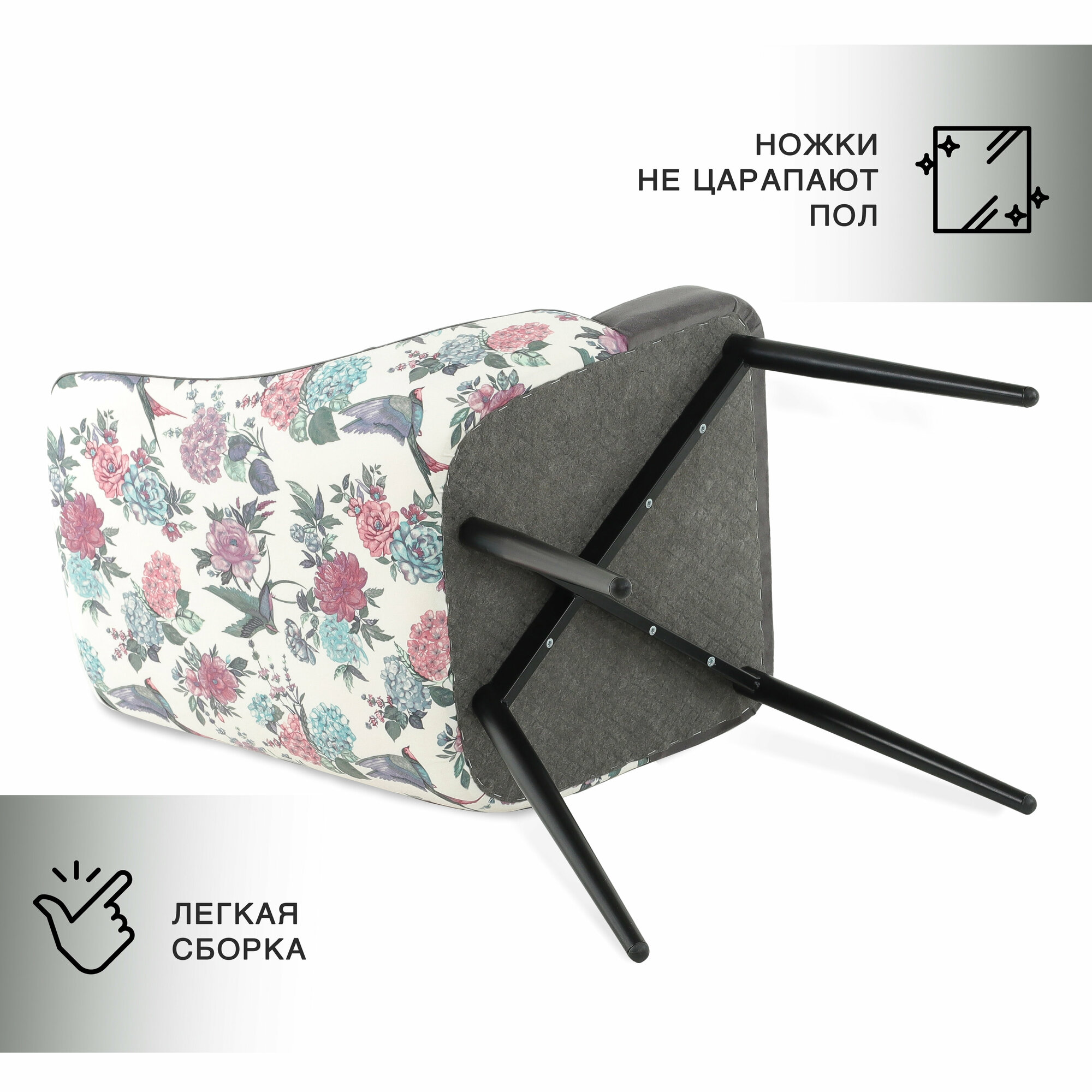 СохранитьКухонный стул с анатомической спинкой и мягким сиденьем, серый велюр с цветами интересное: