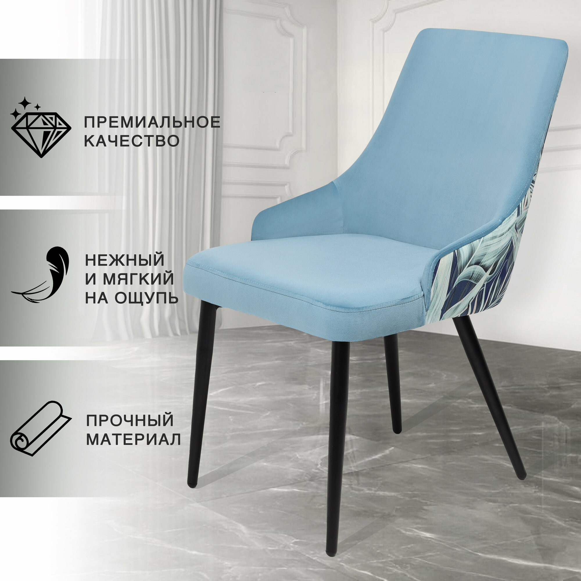 Купить Кухонный стул с анатомической спинкой и мягким сиденьем, голубой велюр