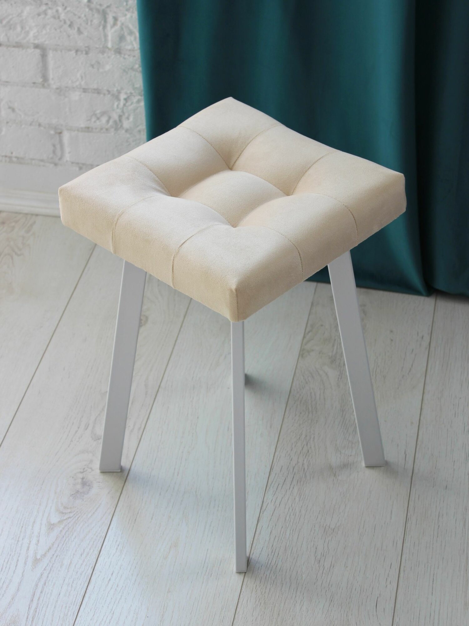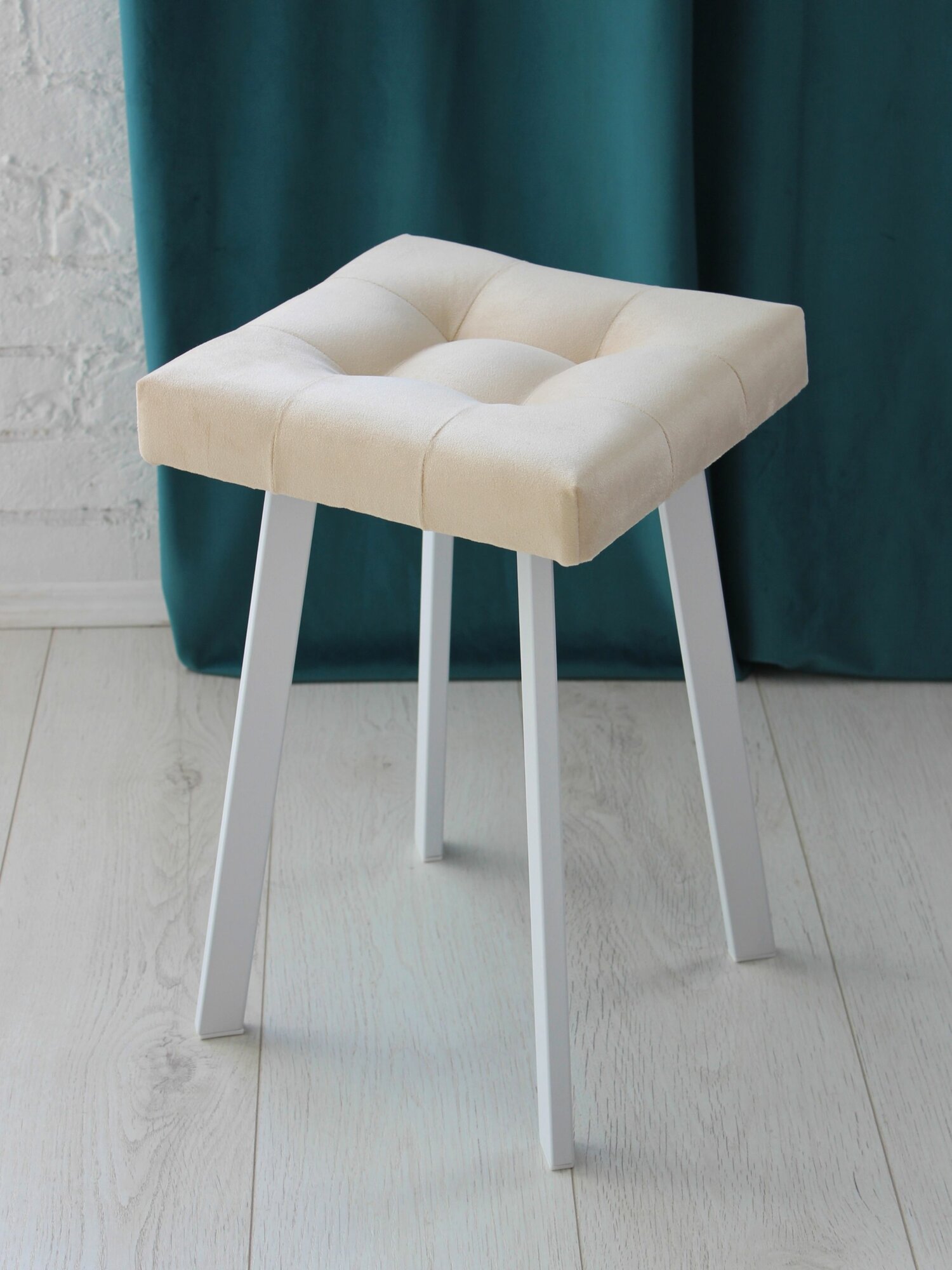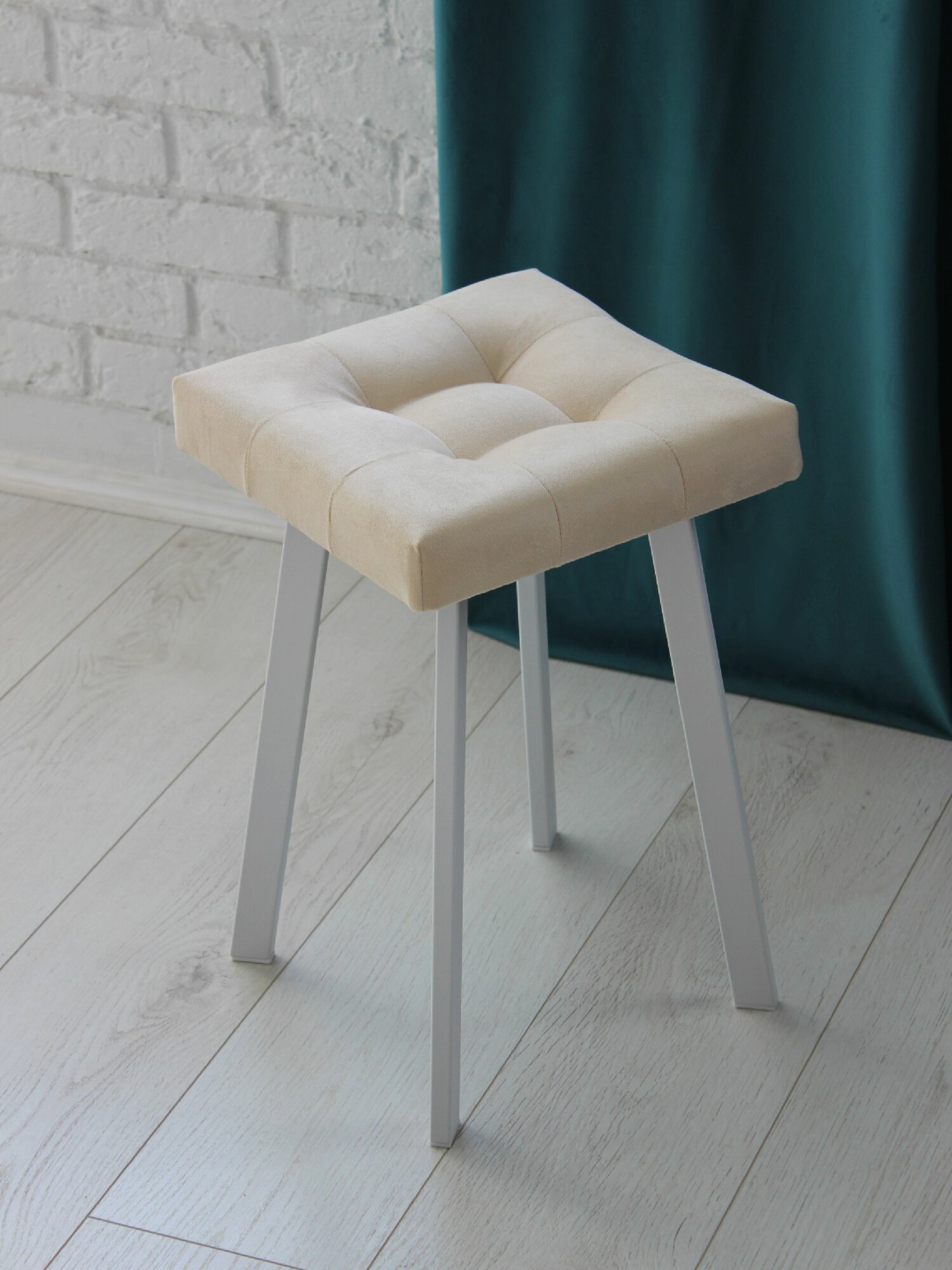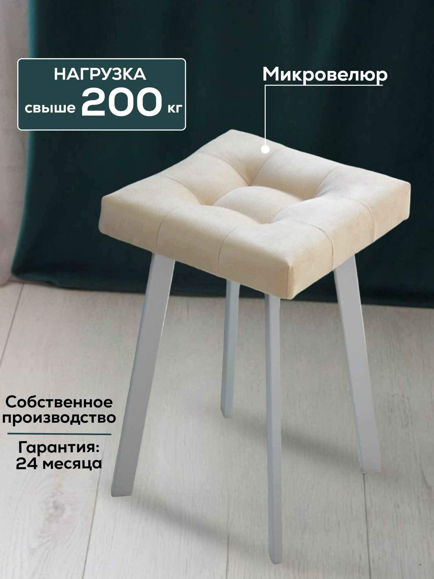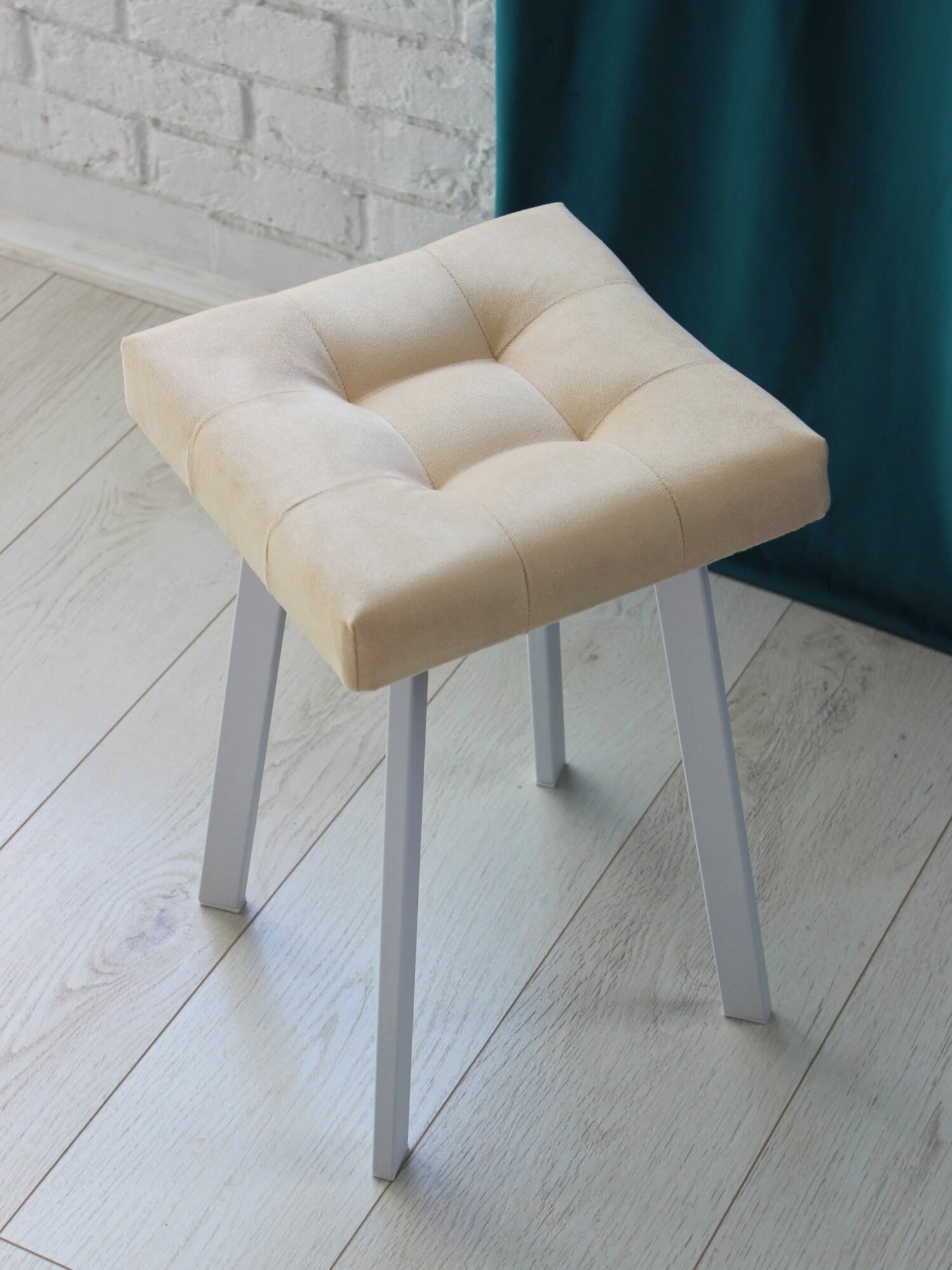 Купить Табурет мягкий бежевый с белыми ножками для кухни и дома усиленный
