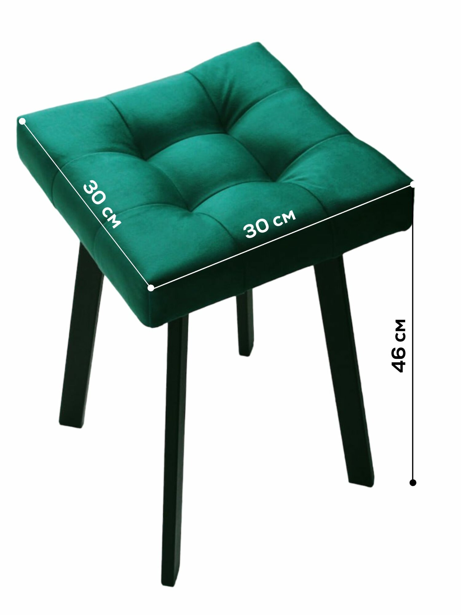 Купить Табурет Linea Art, мягкий, изумрудный, с черными ножками, усиленный, велюр, 30х30х46 см