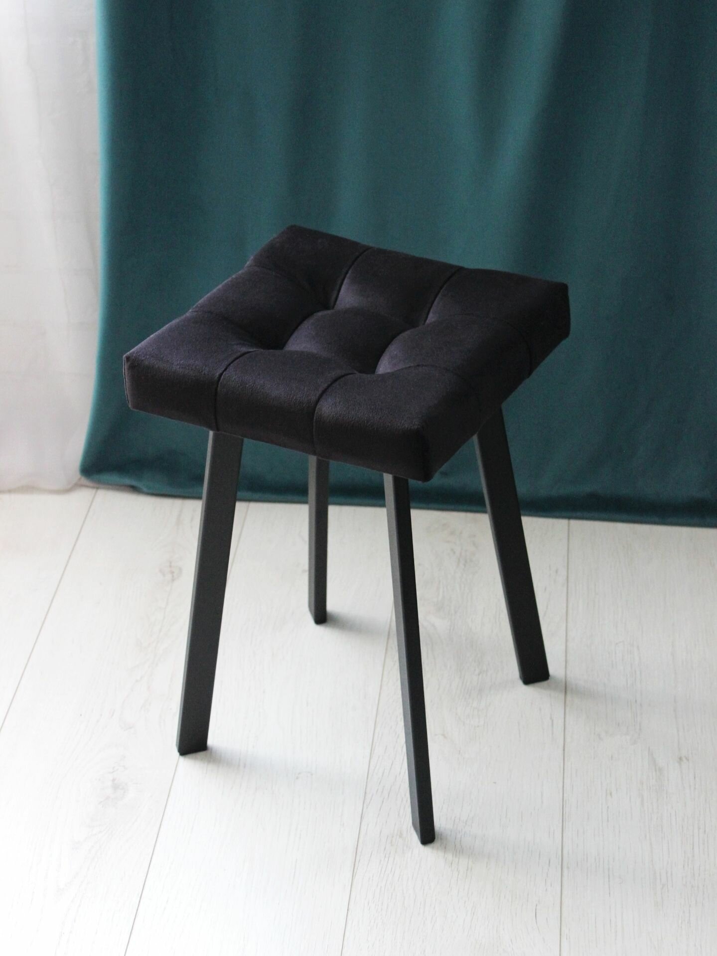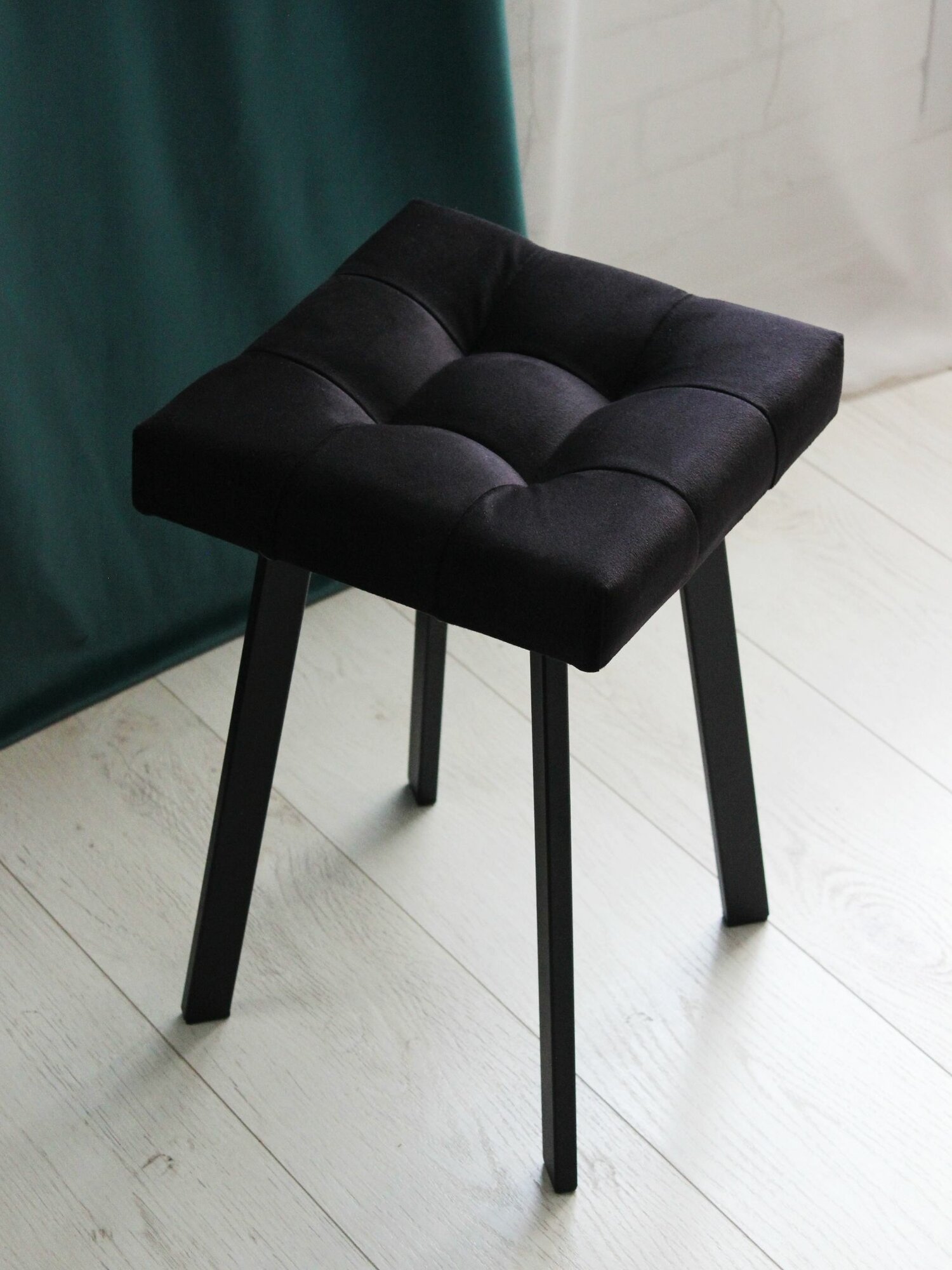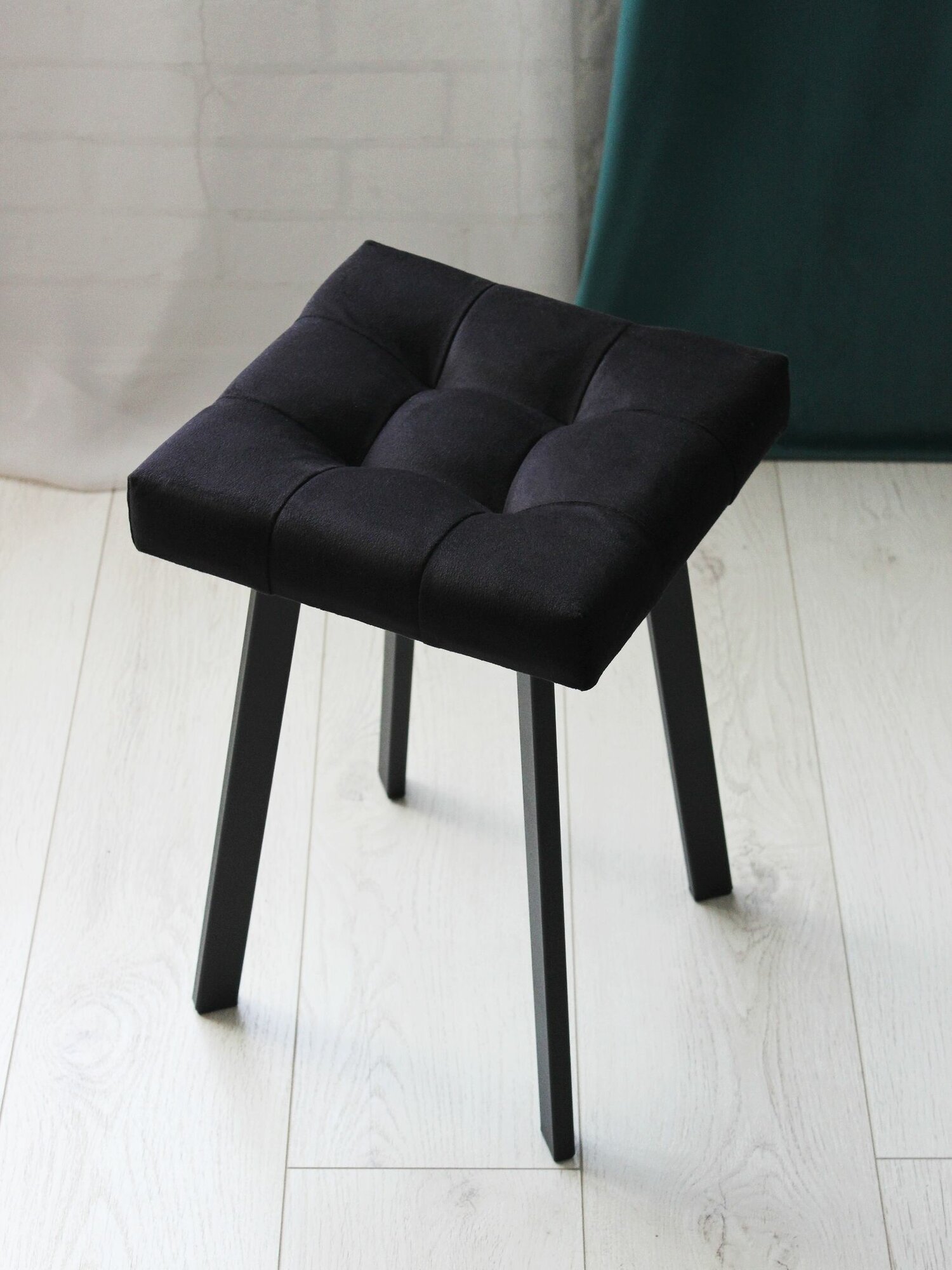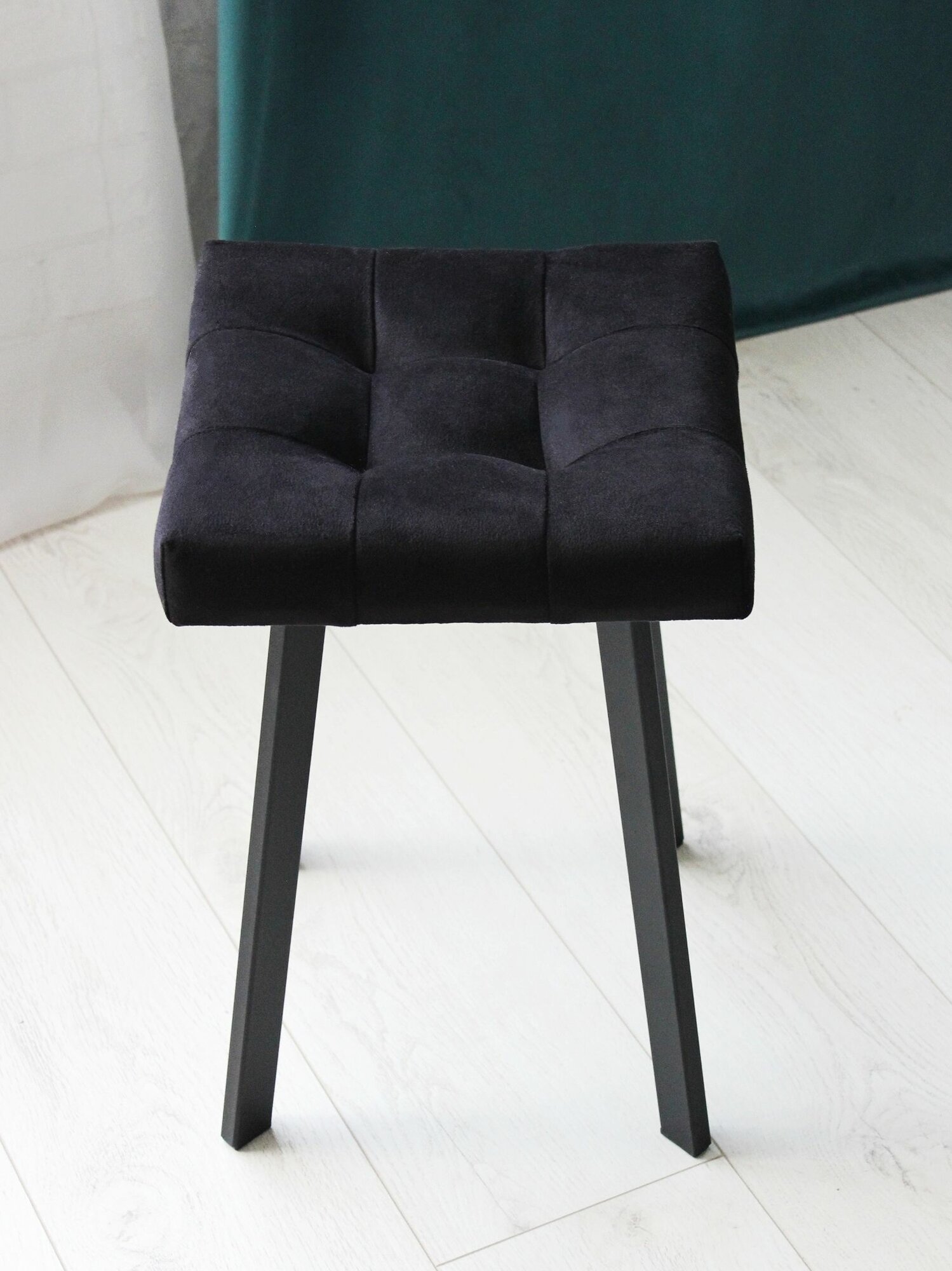 Табурет Linea Art, мягкий, изумрудный, с черными ножками, усиленный, велюр, 30х30х46 см