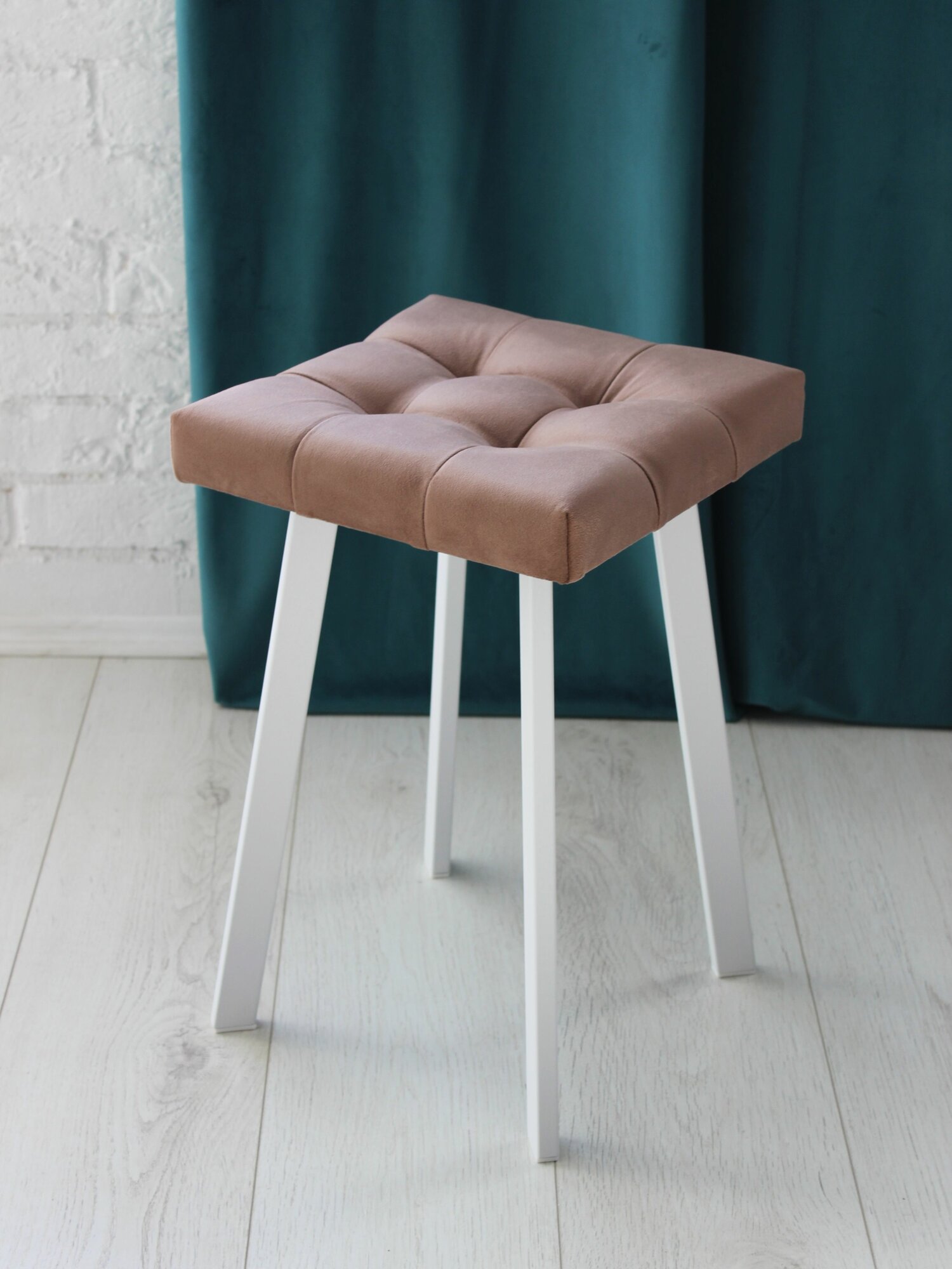 Табурет мягкий бежевый с белыми ножками для кухни и дома усиленный