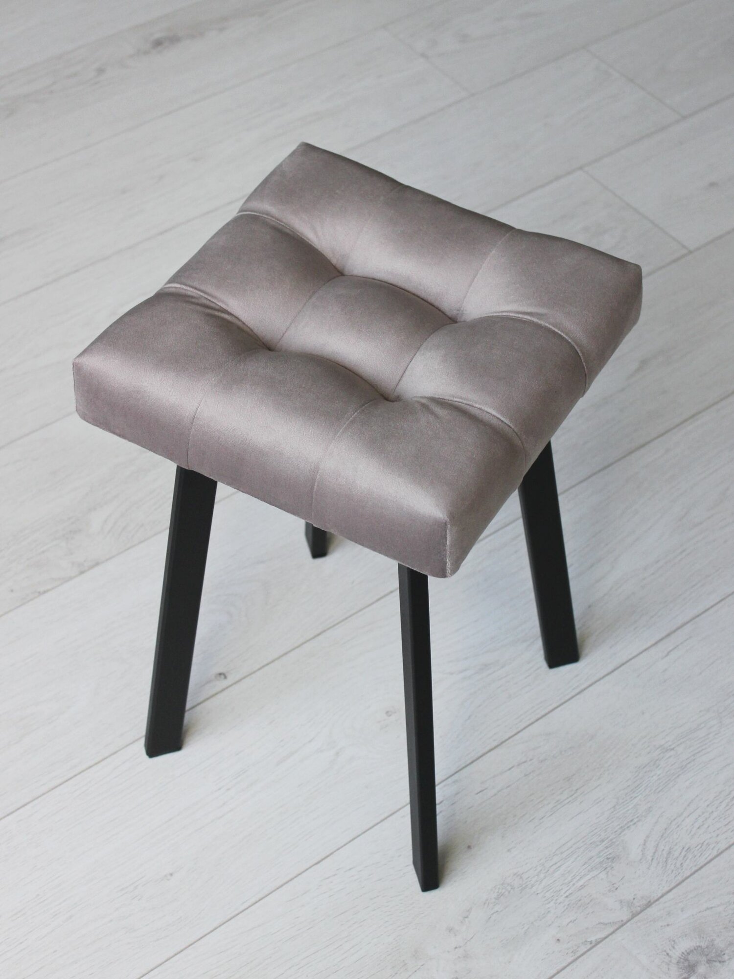 Табурет Linea Art, мягкий, для дома, усиленный, велюр, темно-серый, Каретная стяжка