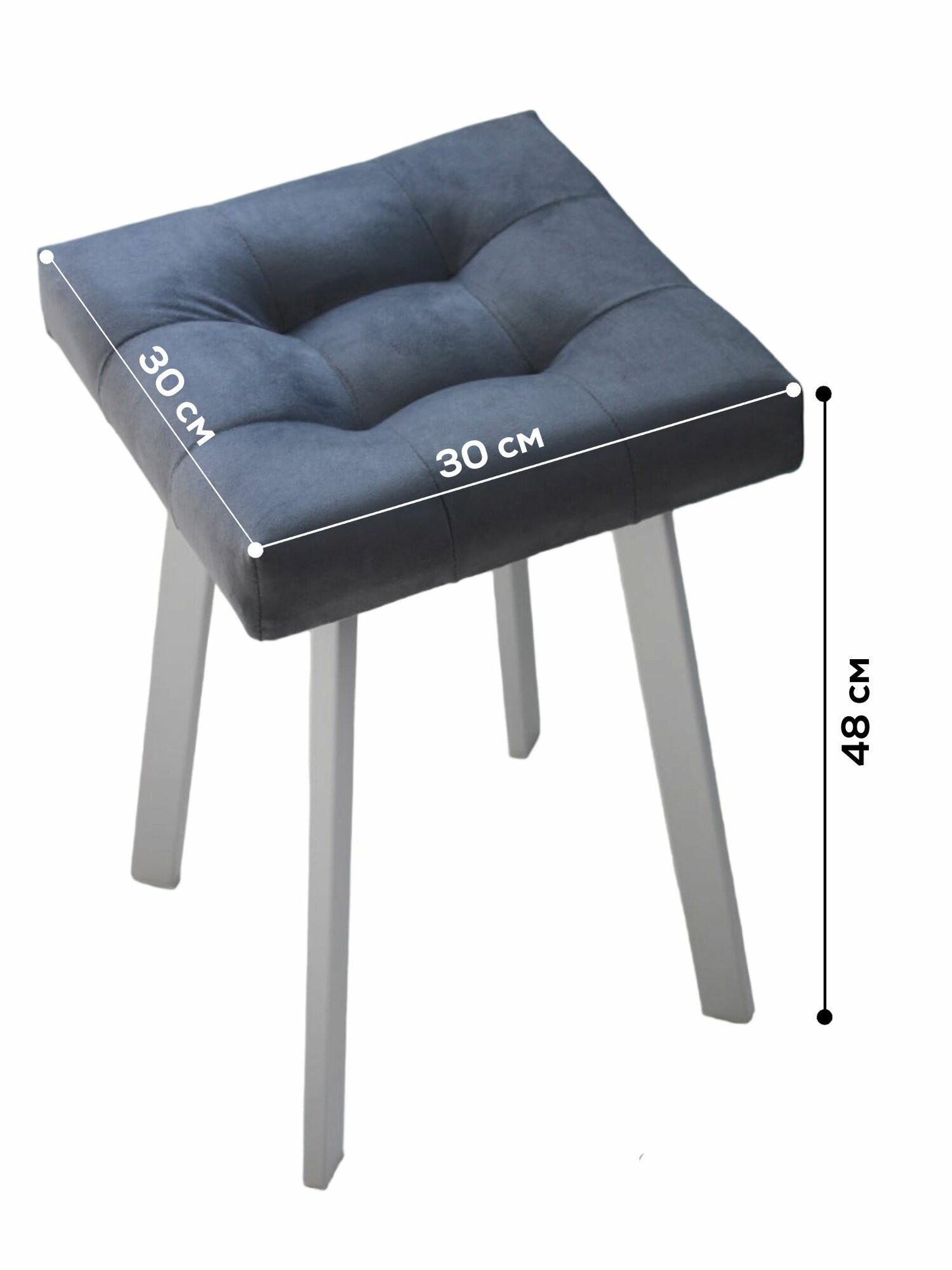 Табурет мягкий синий с белыми ножками для кухни и дома усиленный