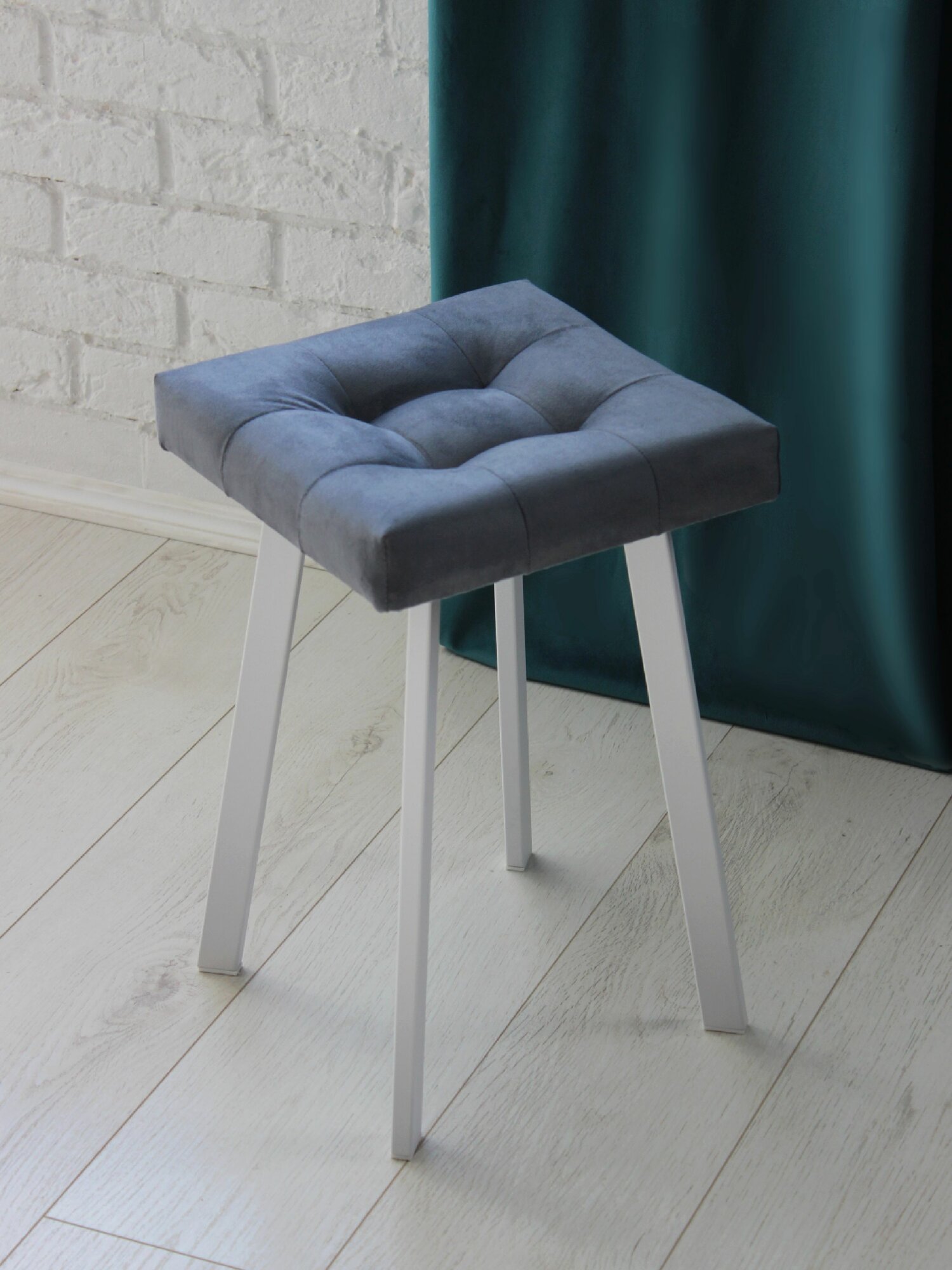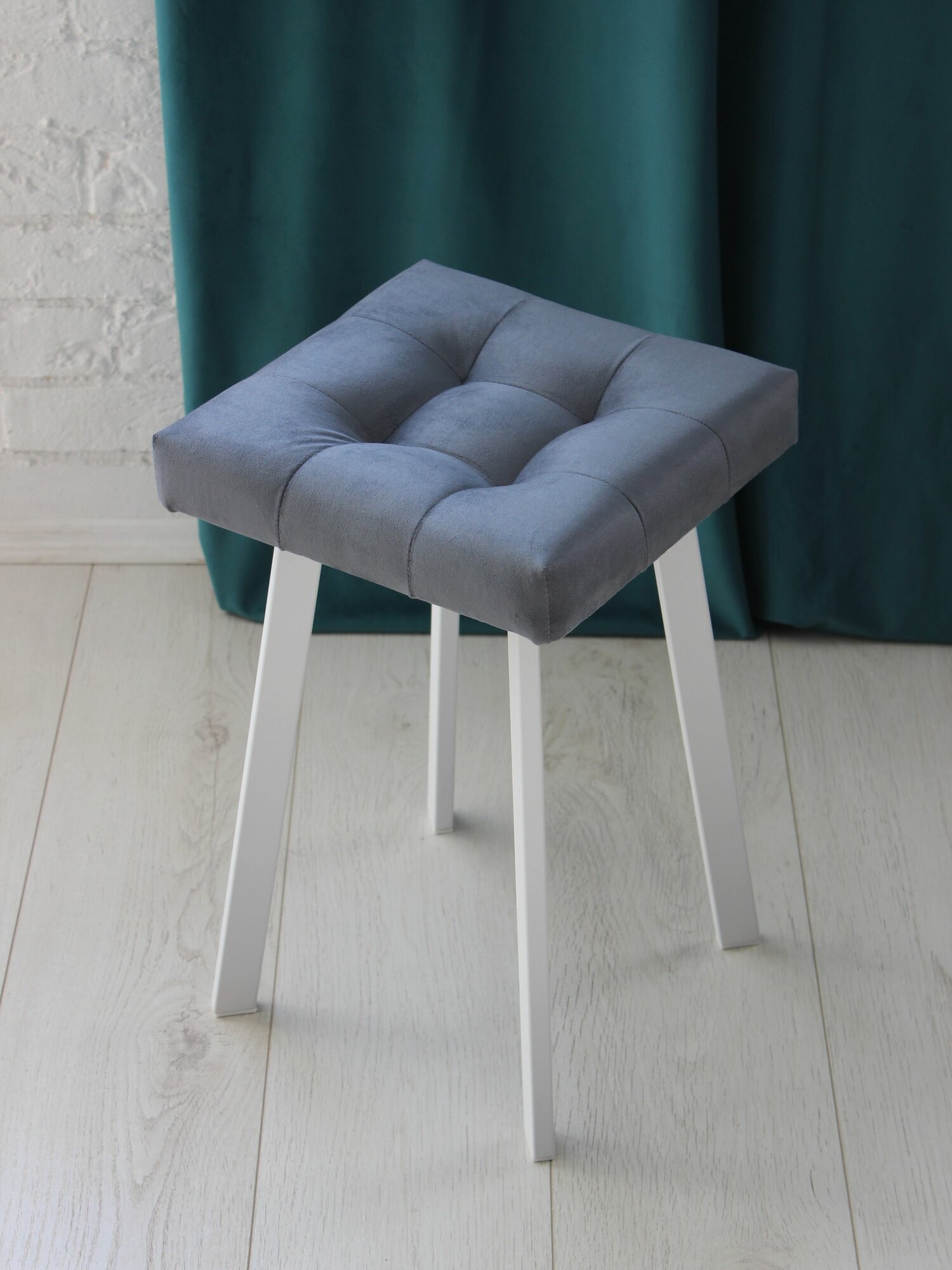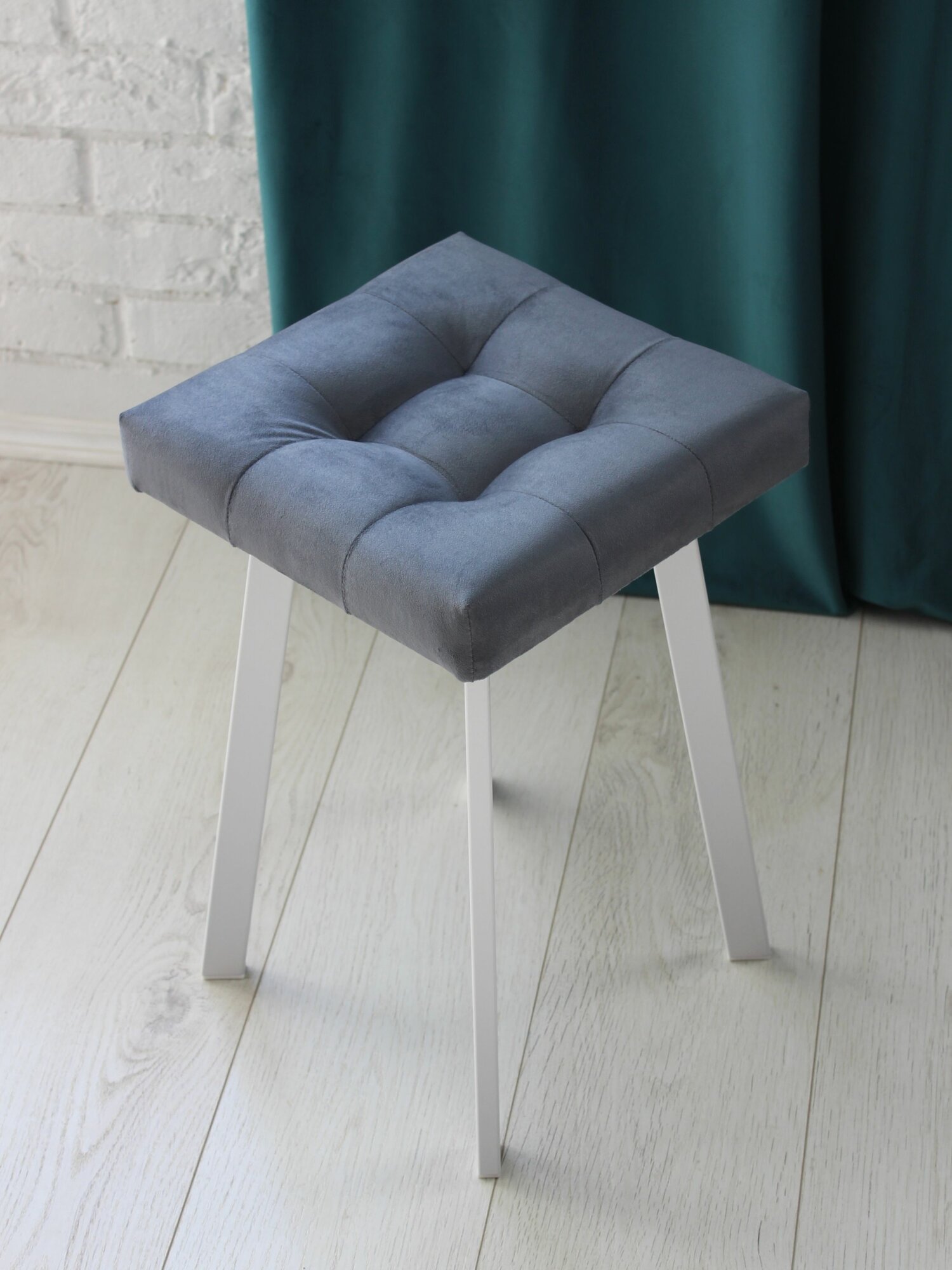 Табурет Linea Art, мягкий, пепельный, для дома, металл, велюр