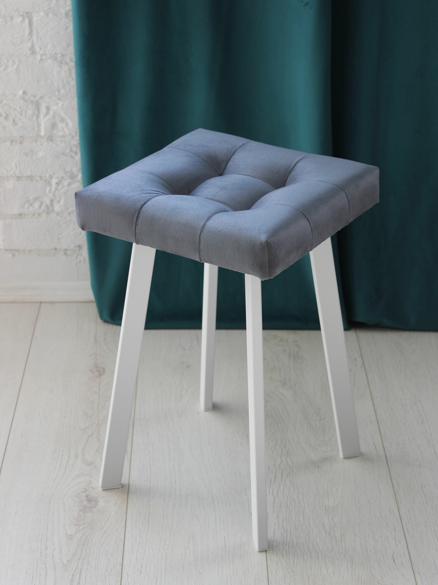 Табурет мягкий пепельный с белыми ножками для кухни и дома усиленный