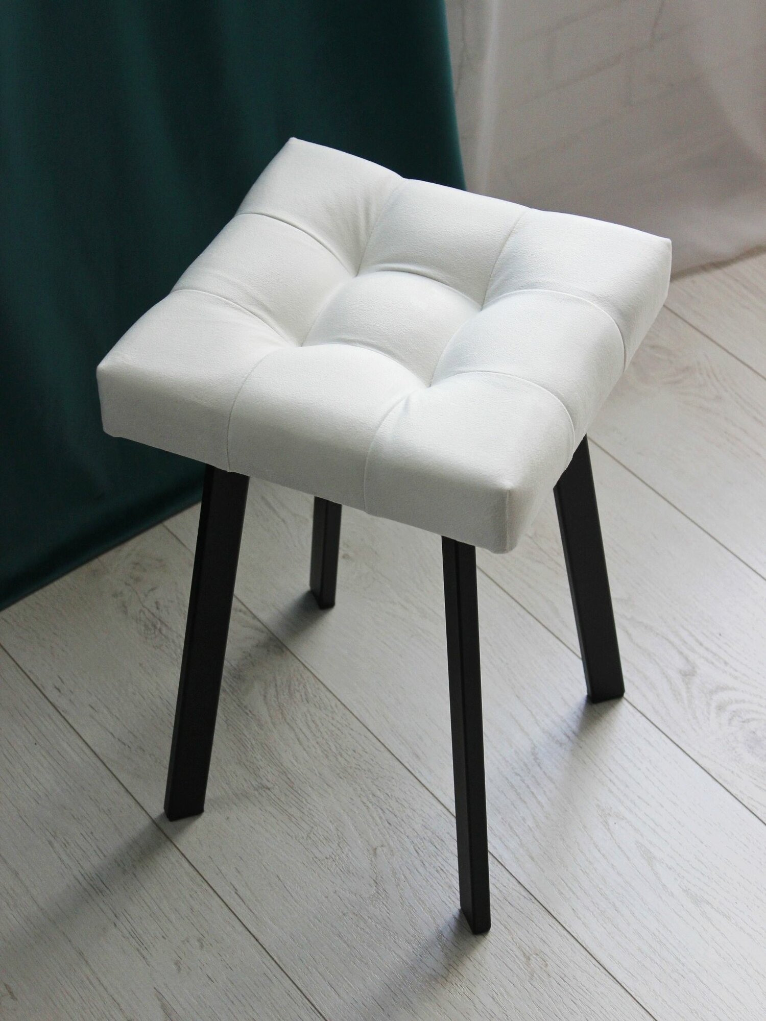 Купить Табурет Linea Art, мягкий, велюр, усиленное основание, каретная стяжка, для дома, белый, 30 см x 30 см