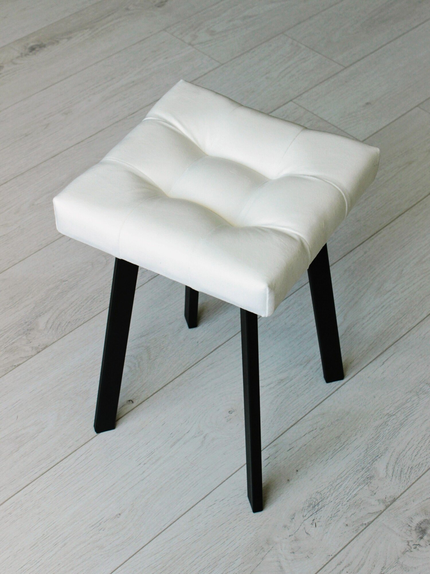 Табурет мягкий черный с белыми ножками для кухни и дома усиленный