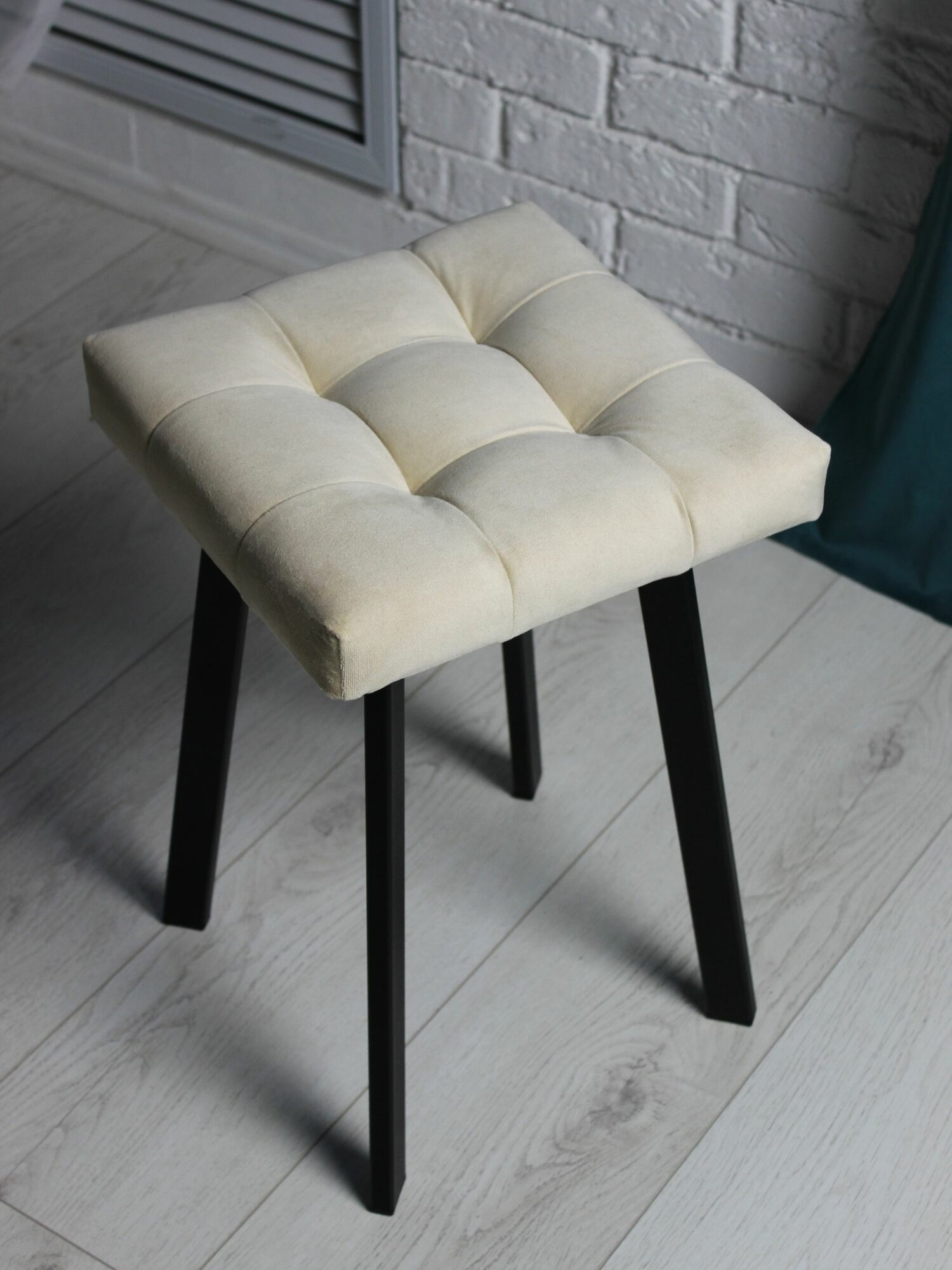 Купить Табурет Linea Art, мягкий, велюр, для дома, бежевый, черный, металл, каретная стяжка