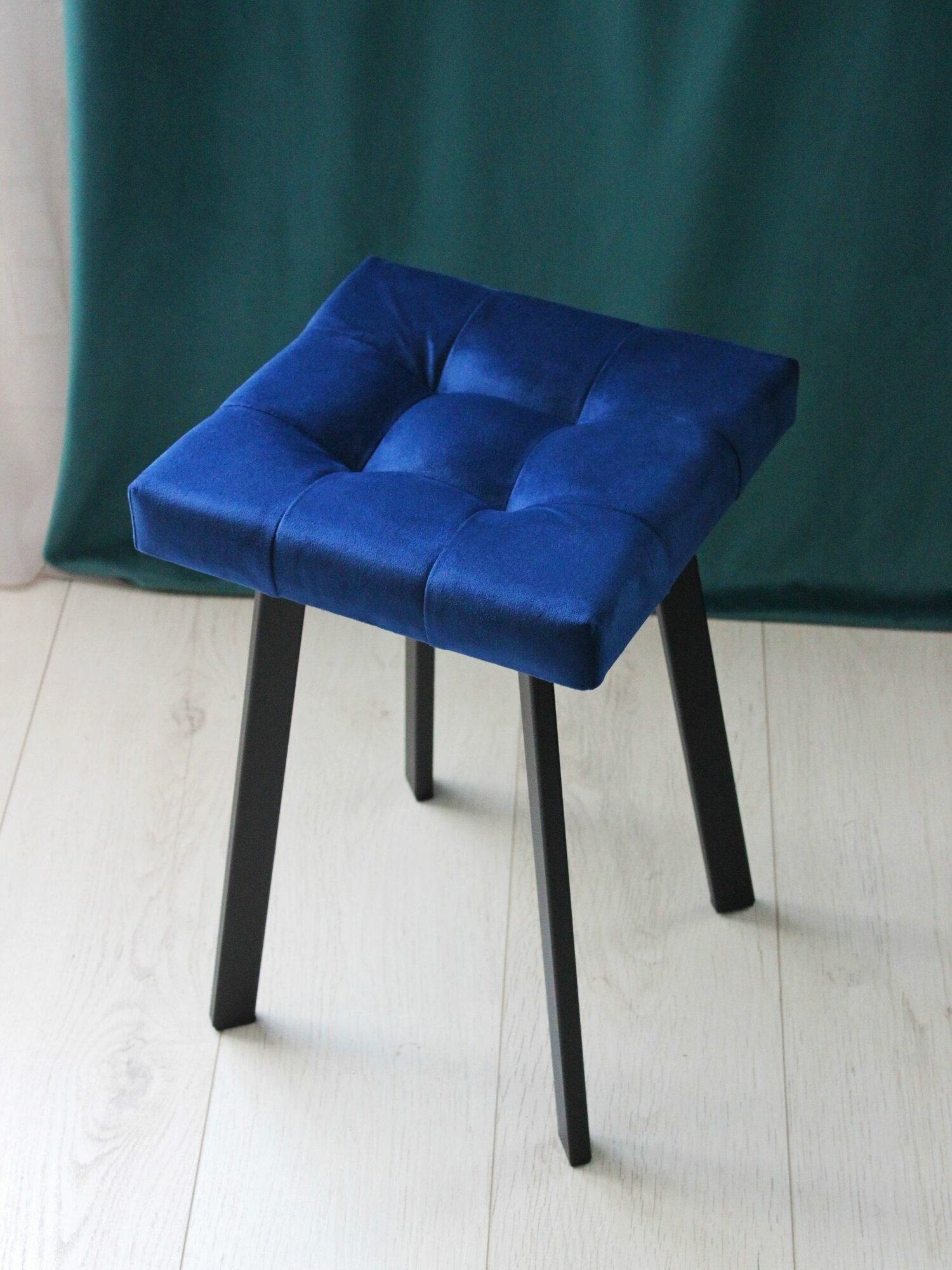 Купить Табурет Linea Art, велюр, синий, с чёрными ножками, для дома