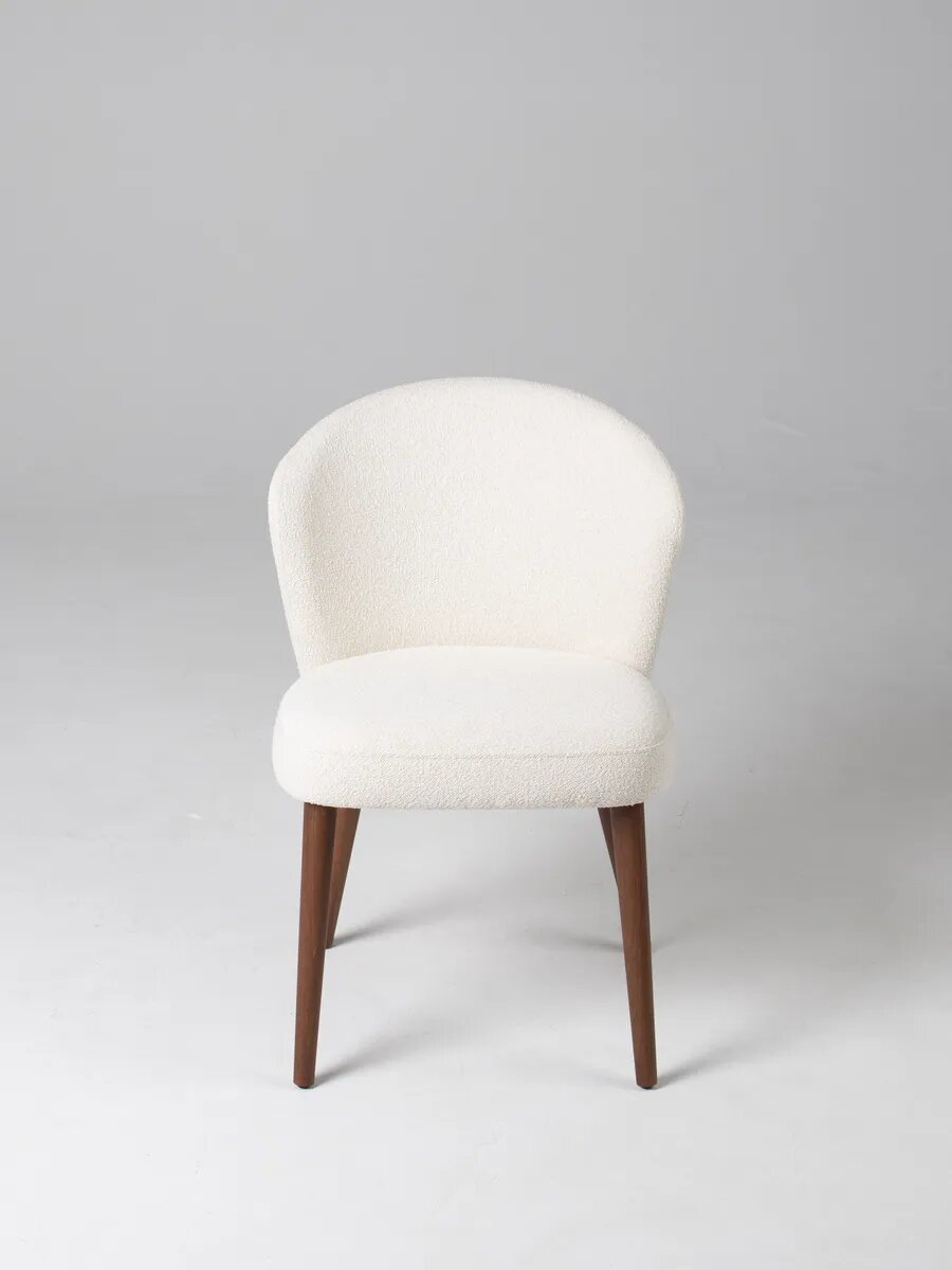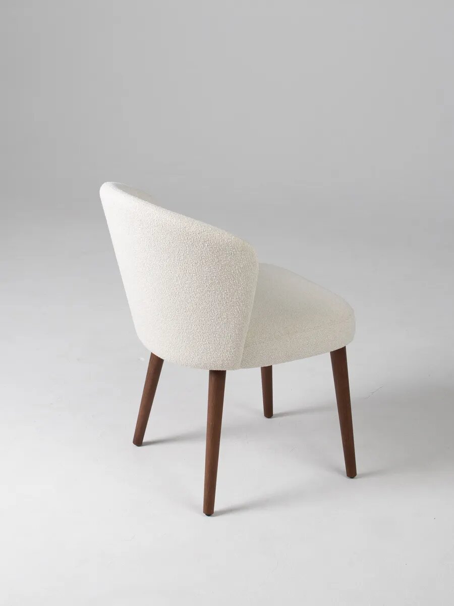 Купить Стул кухонный, мягкий Eva в букле белого цвета, с ножками из массива бука цвет орех