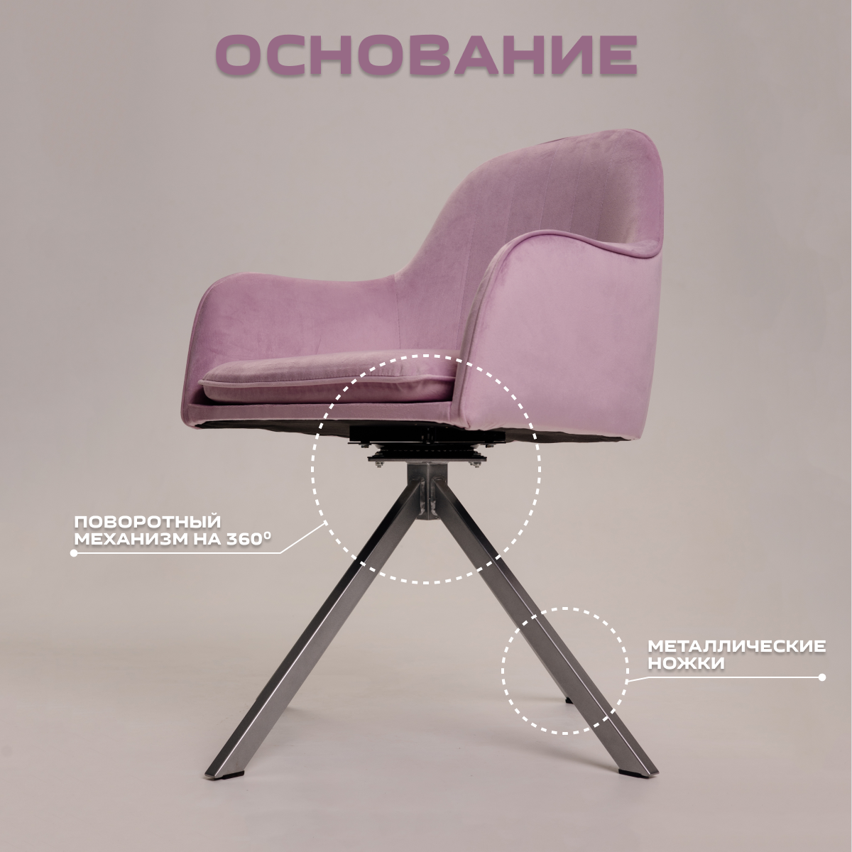 Стул для дома Санрайс серебристое основание, Уютный мастер, розовый велюр
