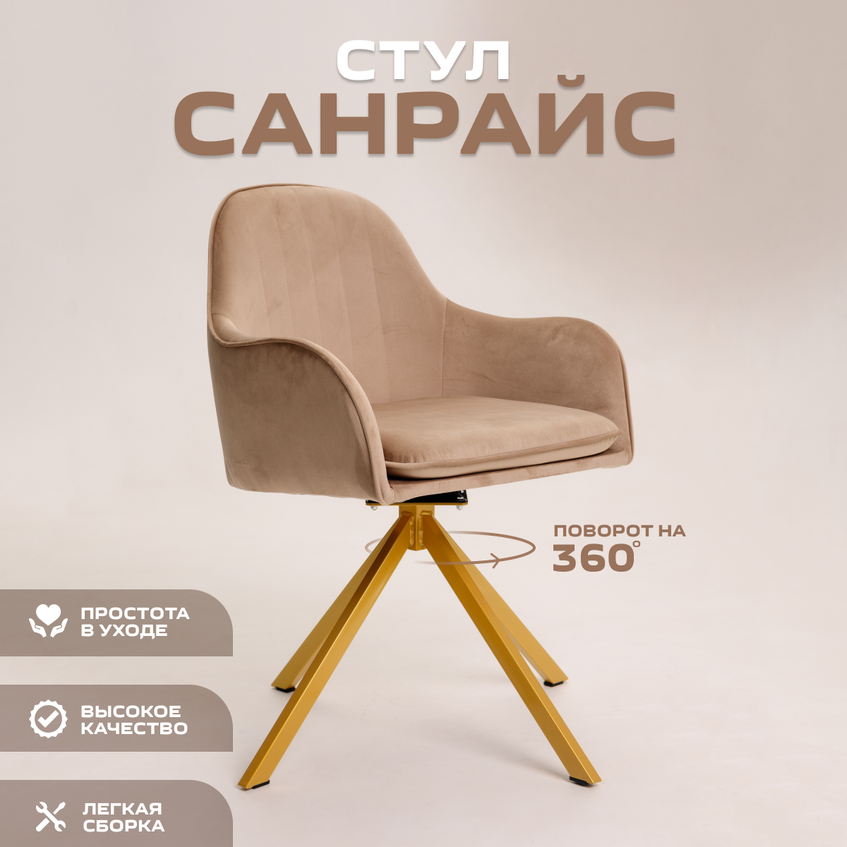 СохранитьСтул Санрайс золотистое основание, Уютный мастер, бежевый велюр интересное:
