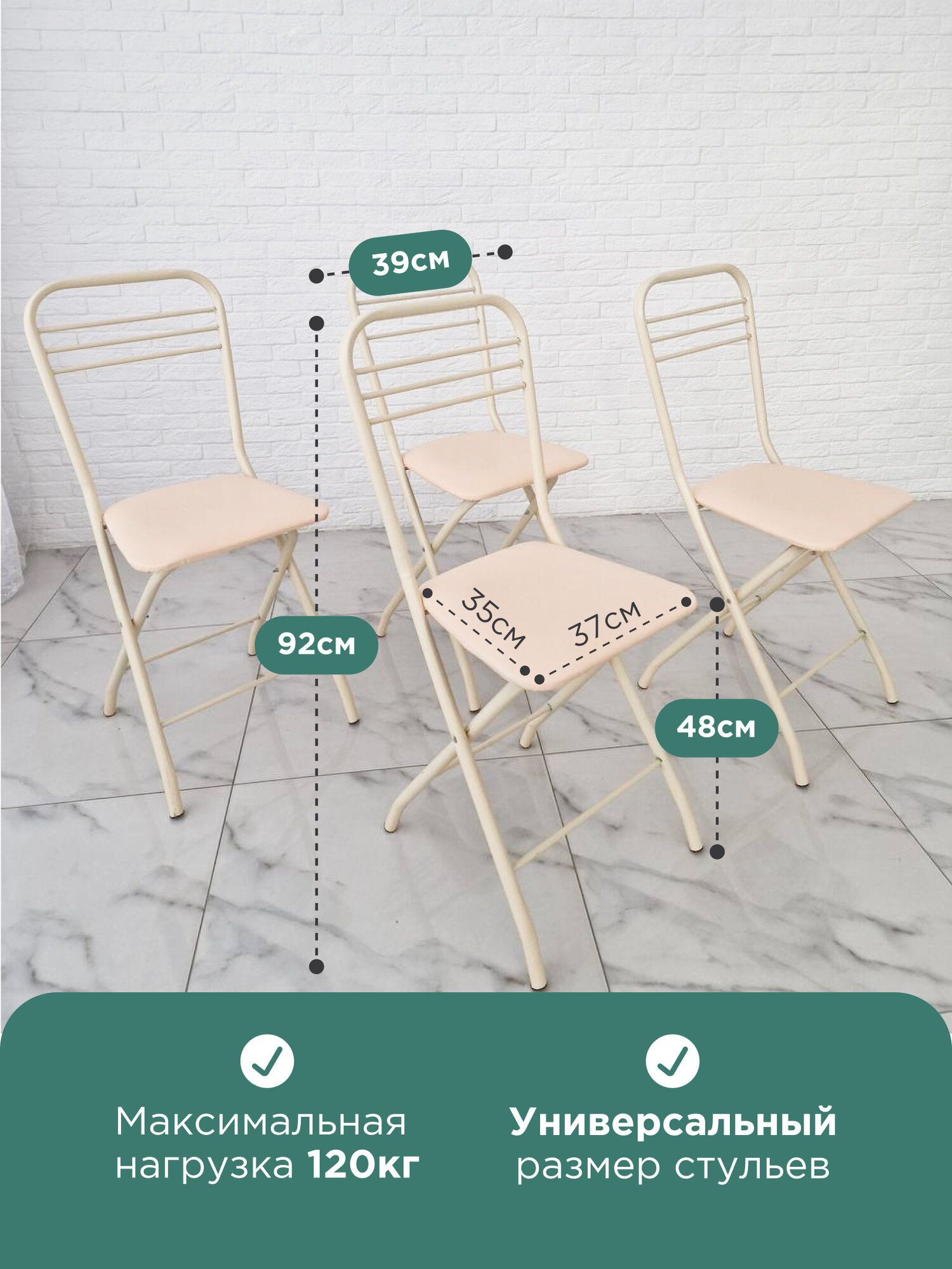 Стулья для кухни 4 шт "Застолье", складные, металлические, бежевые