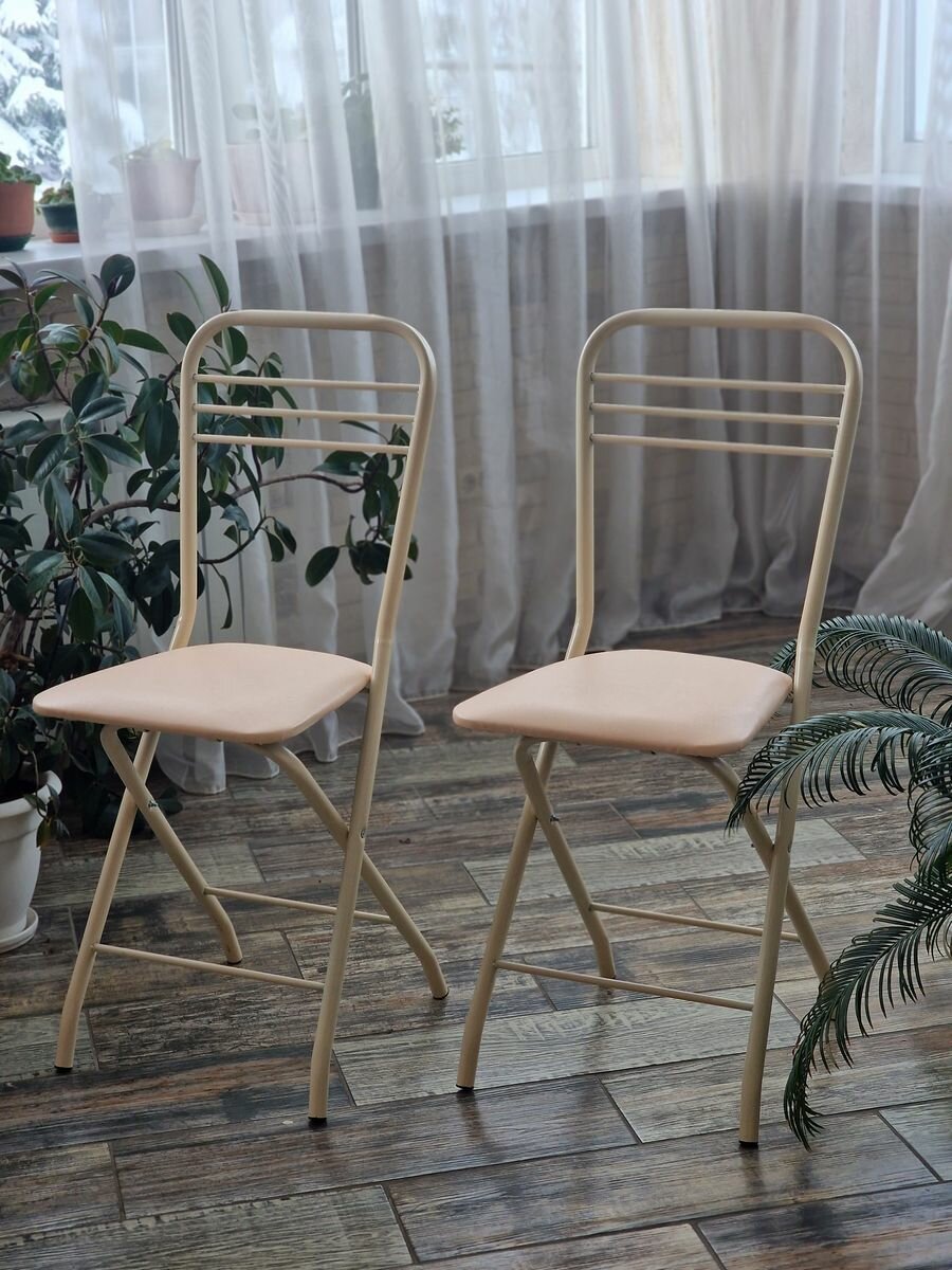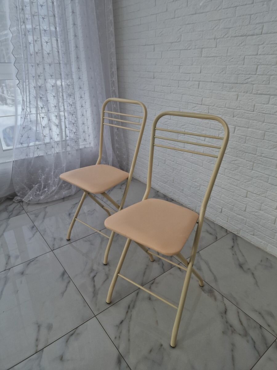 Стулья для кухни 2 шт "Застолье", складные, металлические, бежевые интересное: