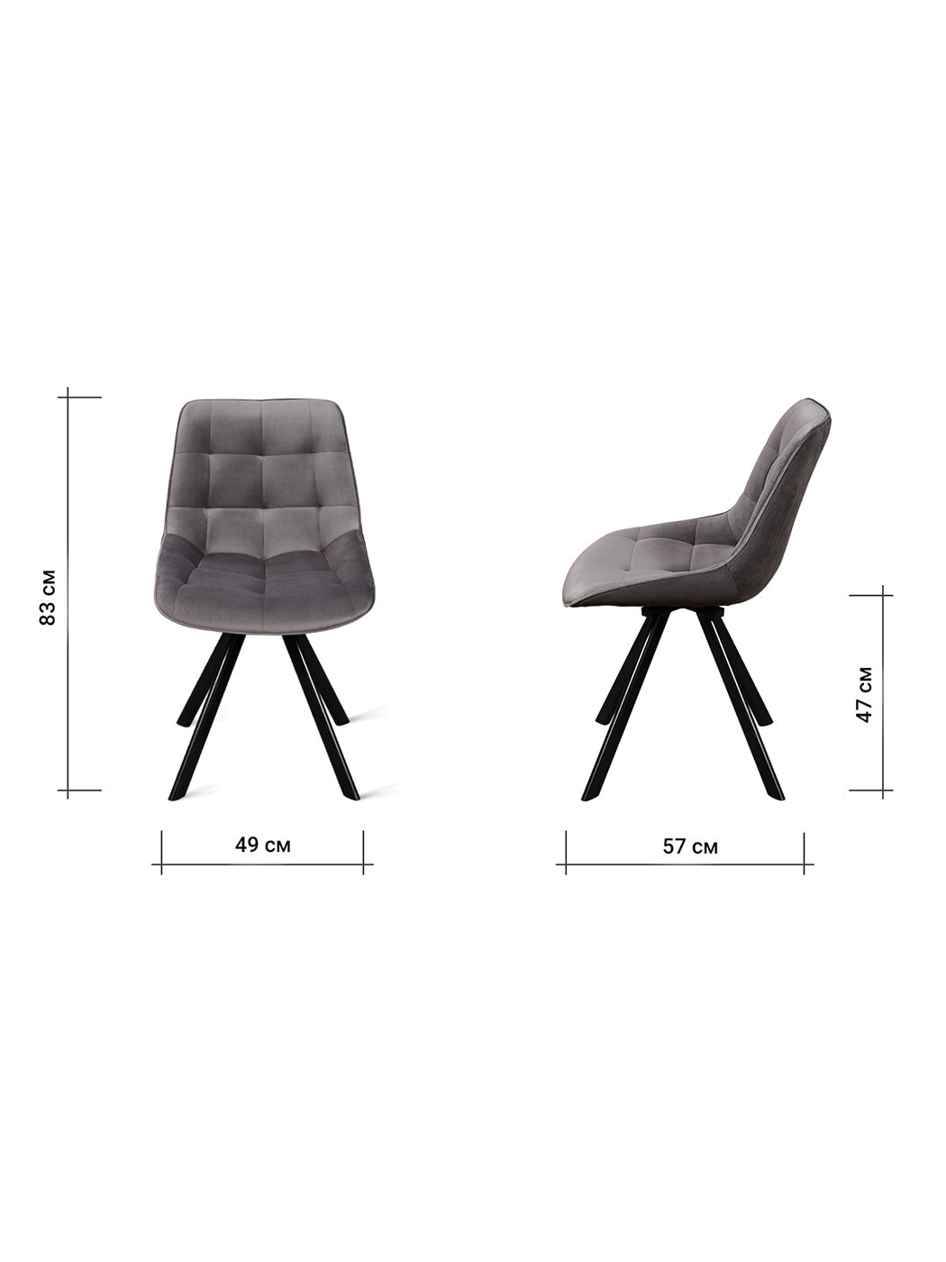 Купить Стул B607-m DARK GREY VL18 BK (4 шт.) с поворотным механизмом велюровый, 48х56х83 см (темно-серый/черные ножки)