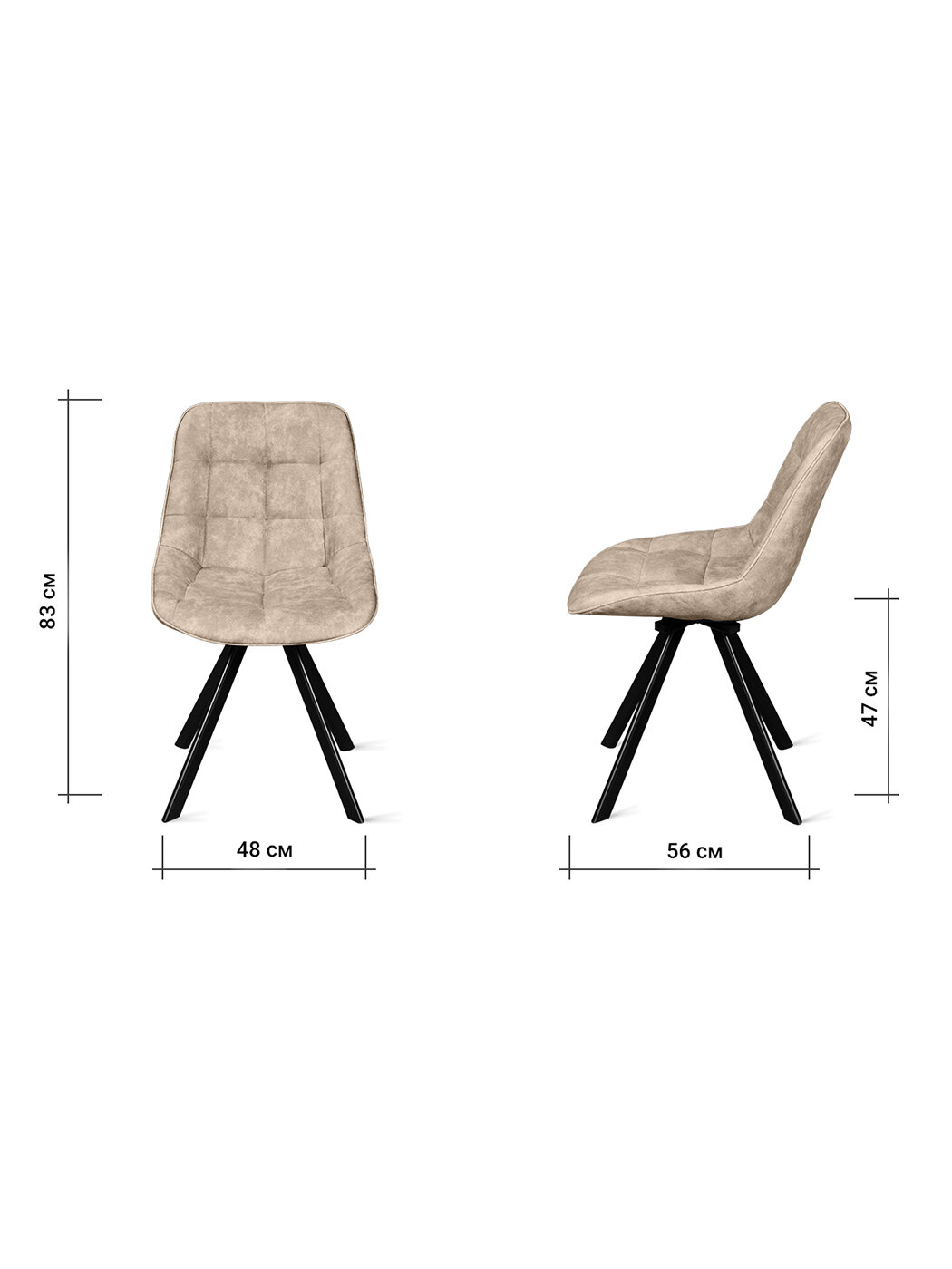 Стул B607-m LATTE VL61 BK (4 шт.) с поворотным механизмом велюровый, 48х56х83 см (бежевый/черные ножки)