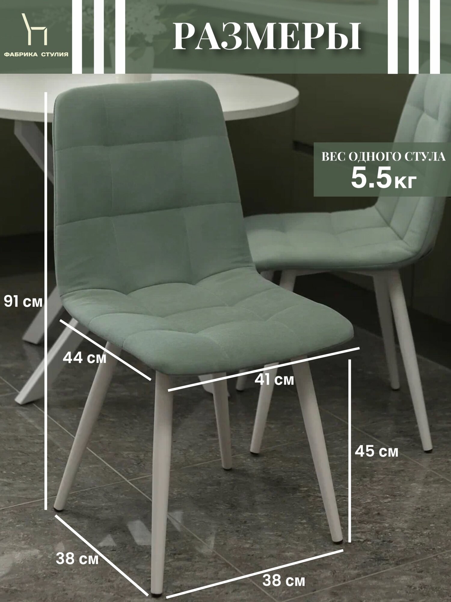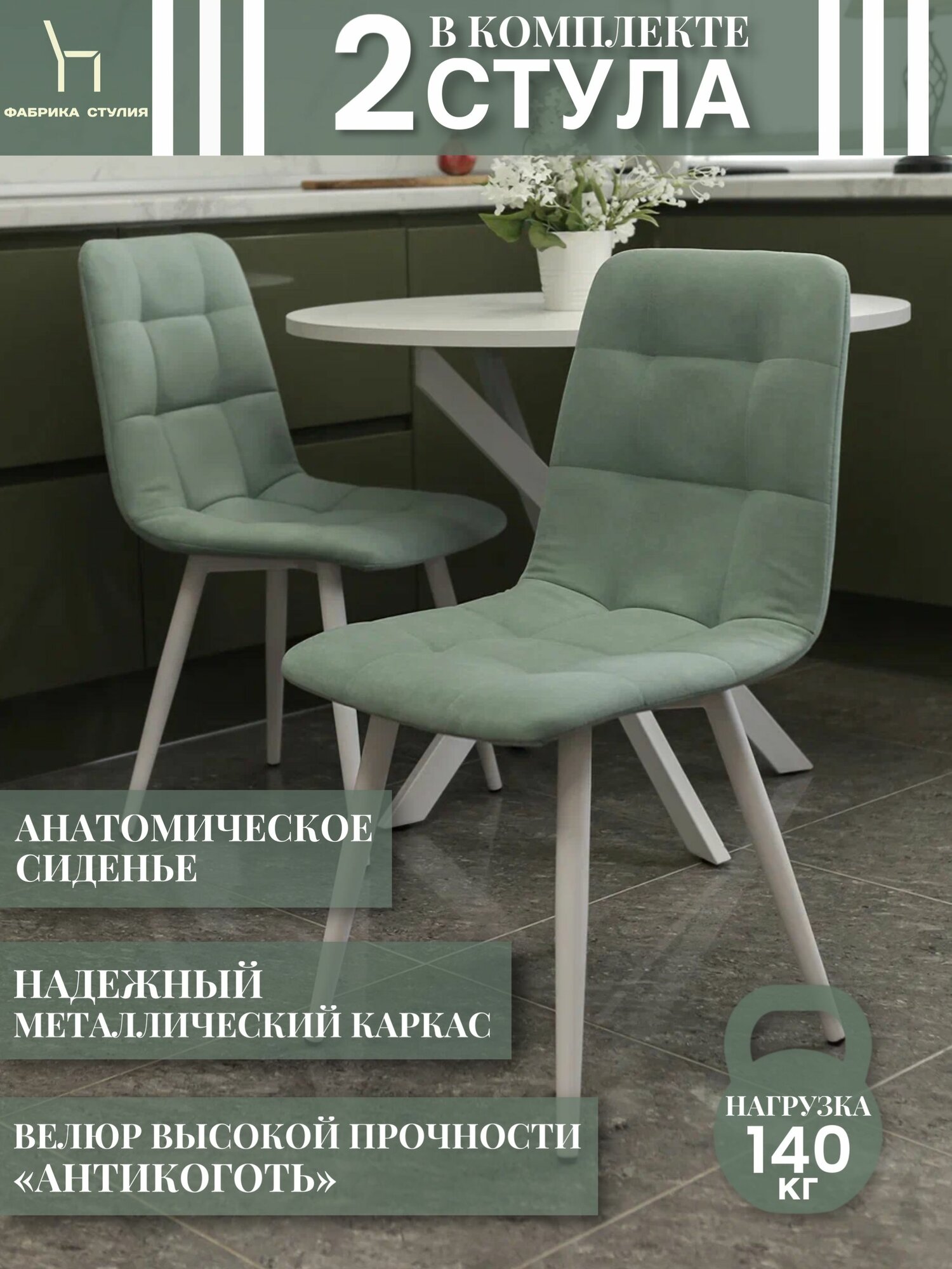 Тедди стул мягкий / Стул для кухни из велюра/ мятный цвет с белыми ножками/комплект стульев/4 шт
