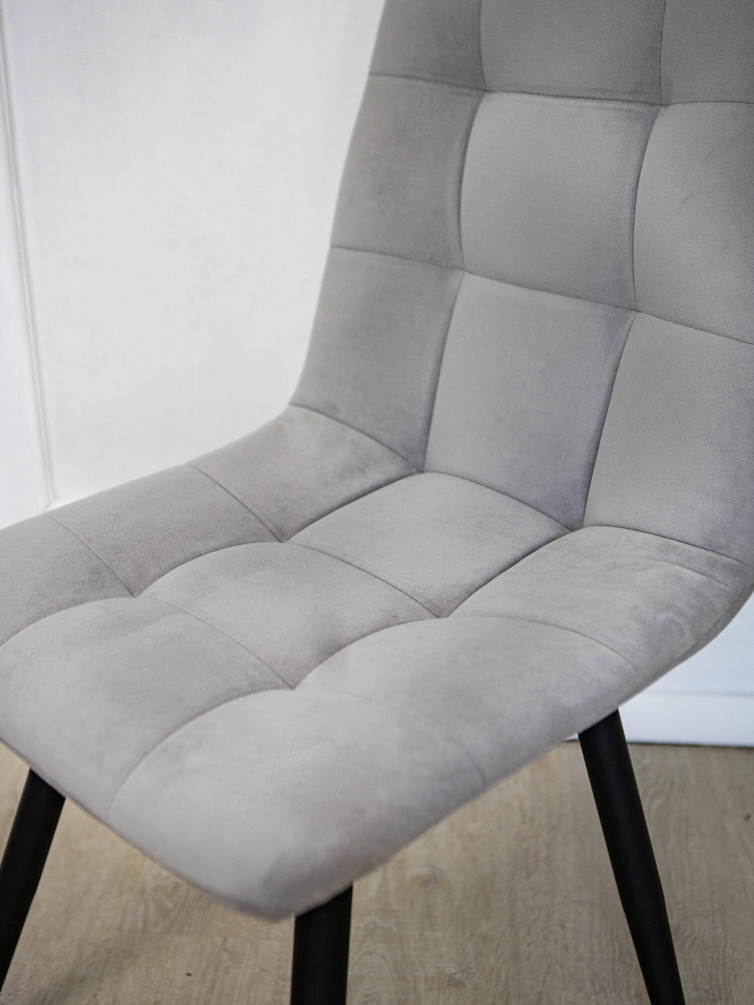 Тедди Комплект Стулья / Стул для кухни/ Стул из велюра/ Стул мягкий, цвет серый серебро, с черными ножками /2 шт