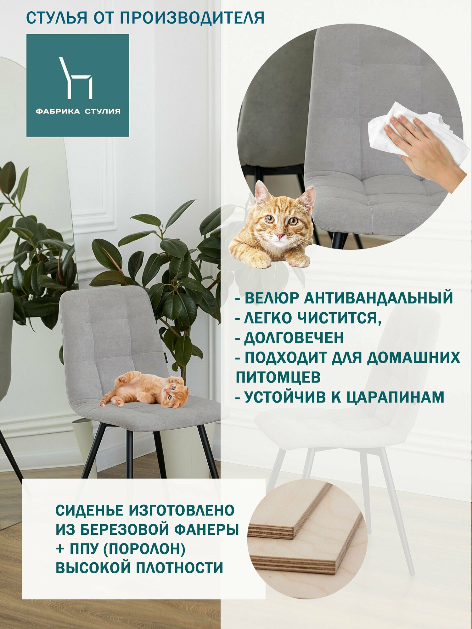 Тедди Комплект Стулья / Стул для кухни/ Стул из велюра/ Стул мягкий, цвет серый серебро, с черными ножками /2 шт