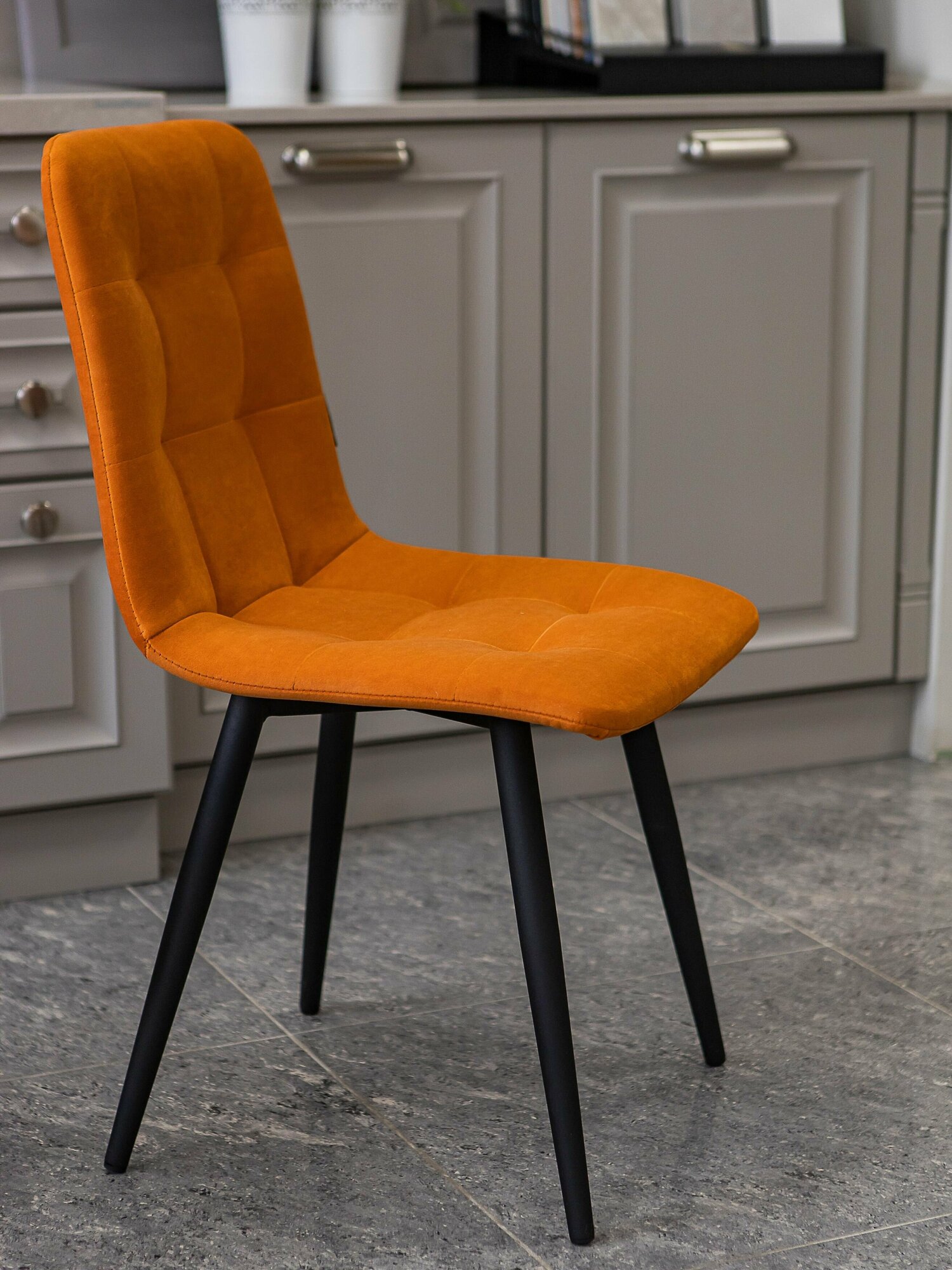 Тедди Мягкий Стул из велюра цвет светло-серый дымчатый, ножки прямоугольные /4 шт