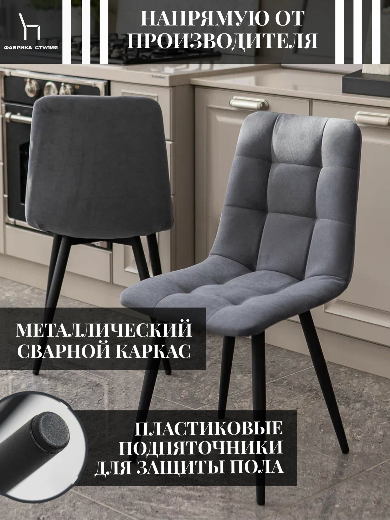 Тедди Стул мягкий для кухни из велюра/ цвет серый дымчатый, черные ножки прямоугольные/2шт