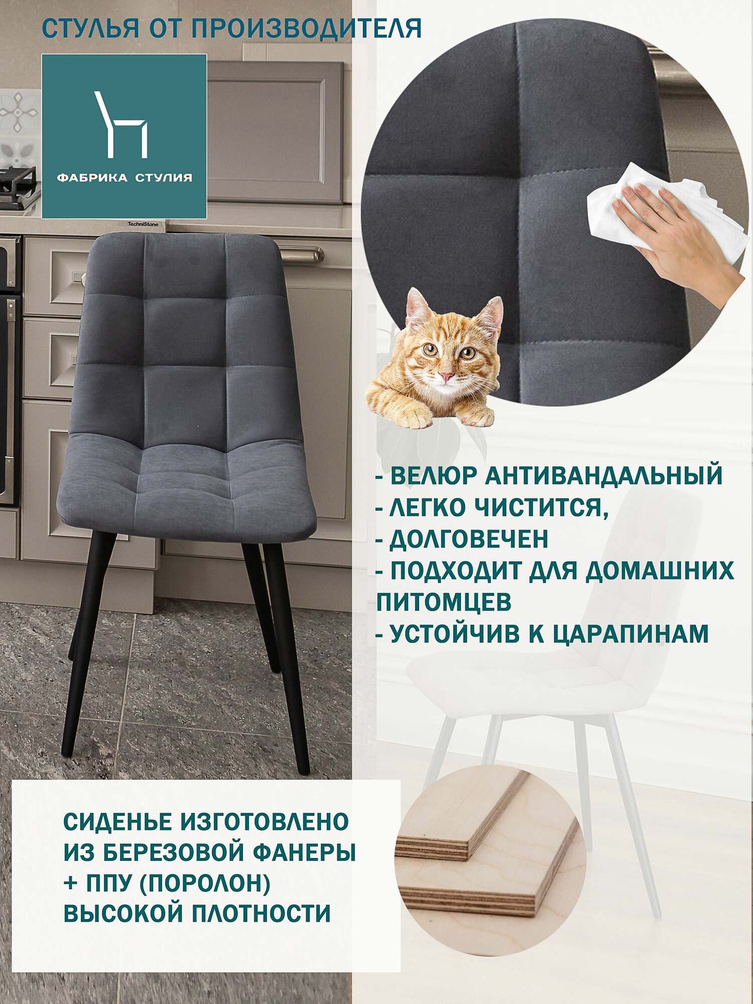 СохранитьМягкие стулья для кухни и комнаты со спинкой Тедди / 4шт, темно-серый интересное: